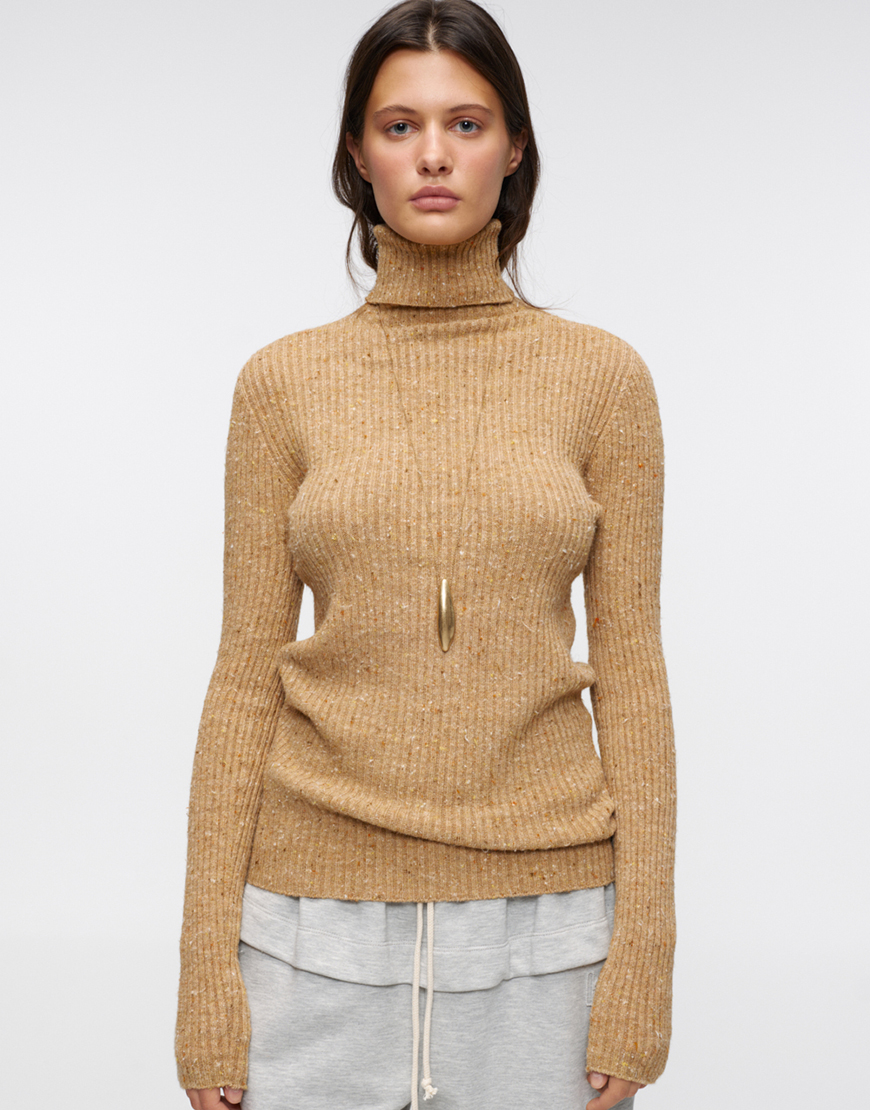 Доставка впродовж 5-7 робочих днівЗатишний гольф з високим коміром бежевого відтінку з різнокольоровими вкрапленнями.Фактурне плетіння та меланжевий ефект створюють цікаву текстуру, що робить виріб чудовим варіантом для урізноманітнення повсякденних образів.