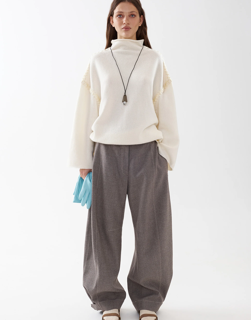 Доставка впродовж 5-7 робочих днівЕлегантні та м’які штани з преміальної вовни та кашеміру. Модель утеплена дубляжем, завдяки чому краще зберігає тепло та форму. Приємні до тіла та комфортні в холодніші дні. На поясі та внизу передбачені регулятори на кнопках, що дозволяють коригувати посадку. Додаткова декоративна прострочка надає виробу більш структурованого й охайного вигляду.