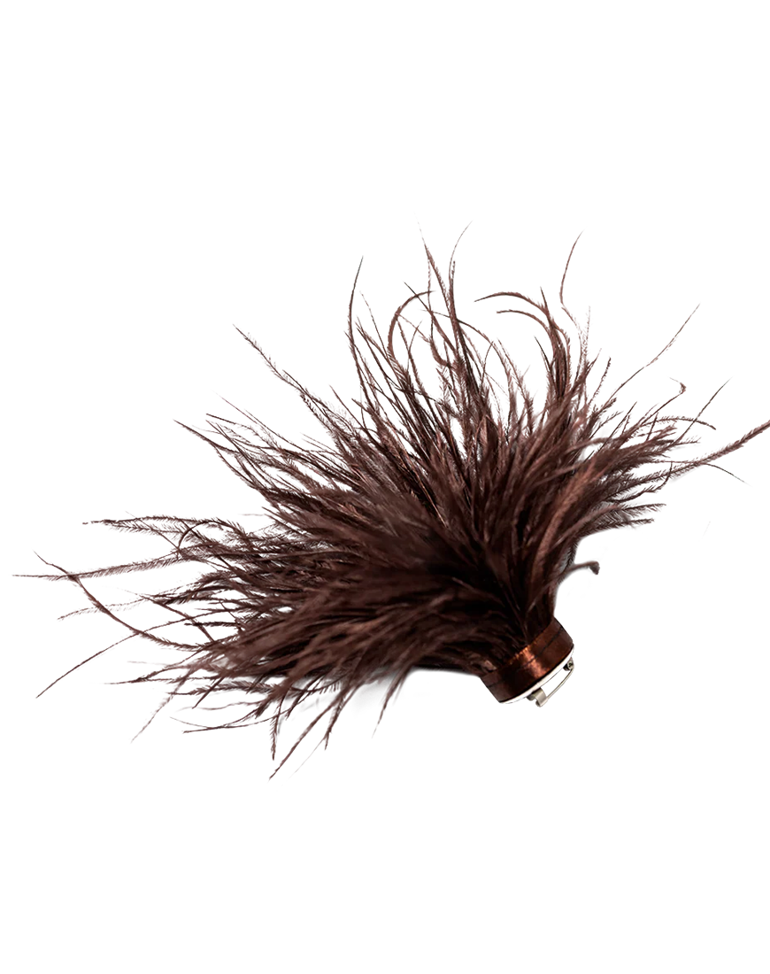 Доставка впродовж 5-7 робочих днівБрошка з натурального страусиного пір’я в коричневому кольорі. Має дві застібки шпильку та затискач, що дозволяє зручно закріплювати брошку на різних видах одягу. Ідеальний акцентний аксесуар, який додасть вашим образам унікальності.
