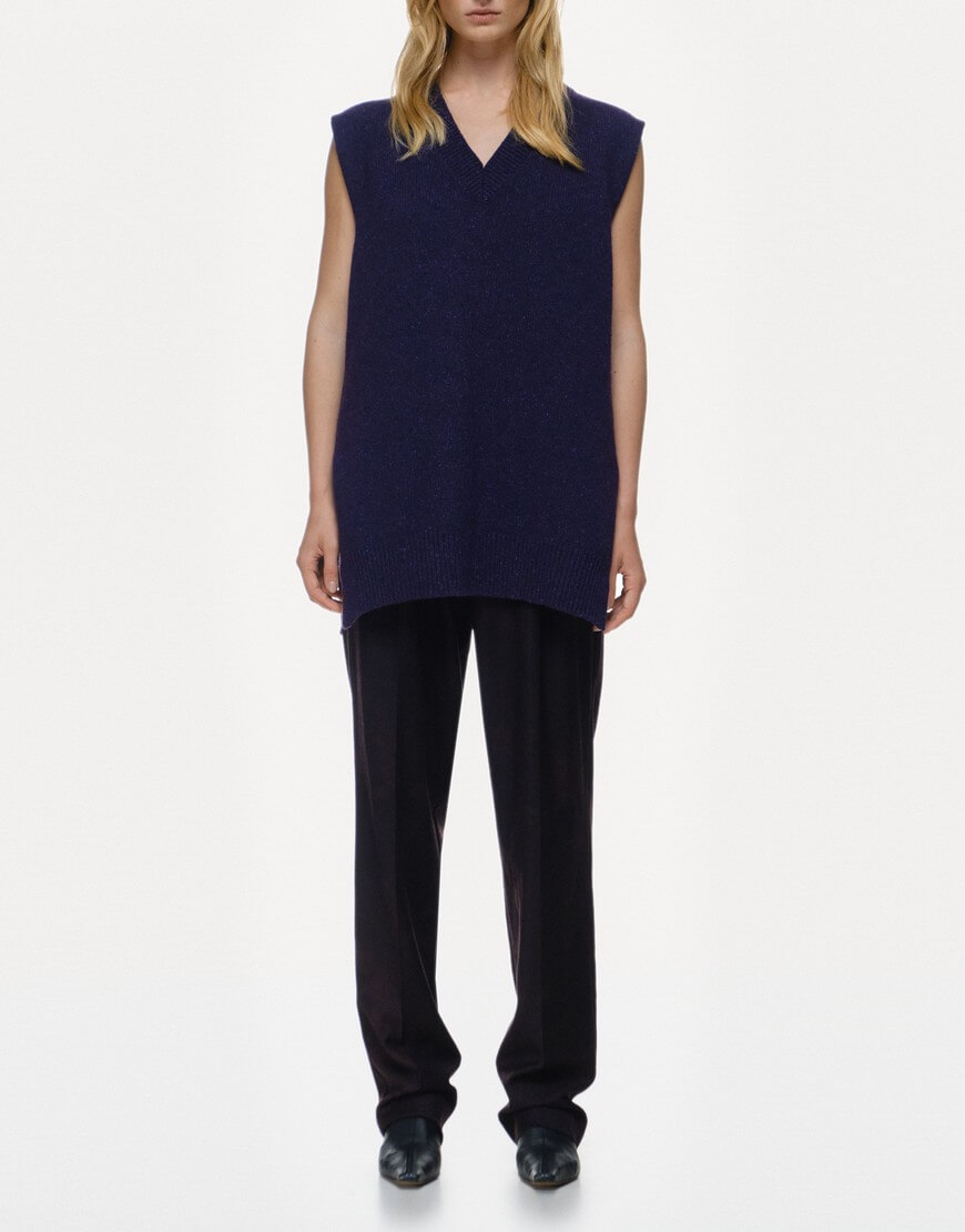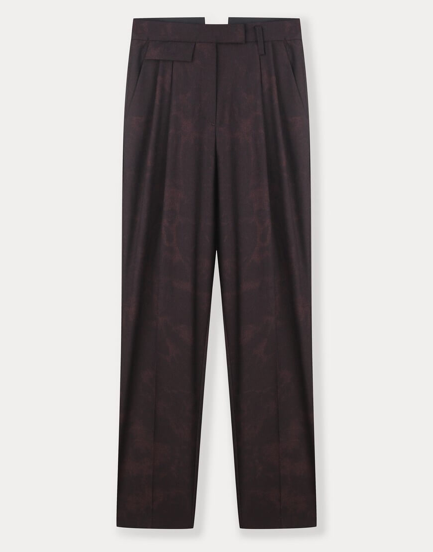 Штани прямого крою з защипами, оздоблені двома прорізними кишенями і декоративним клапаном.