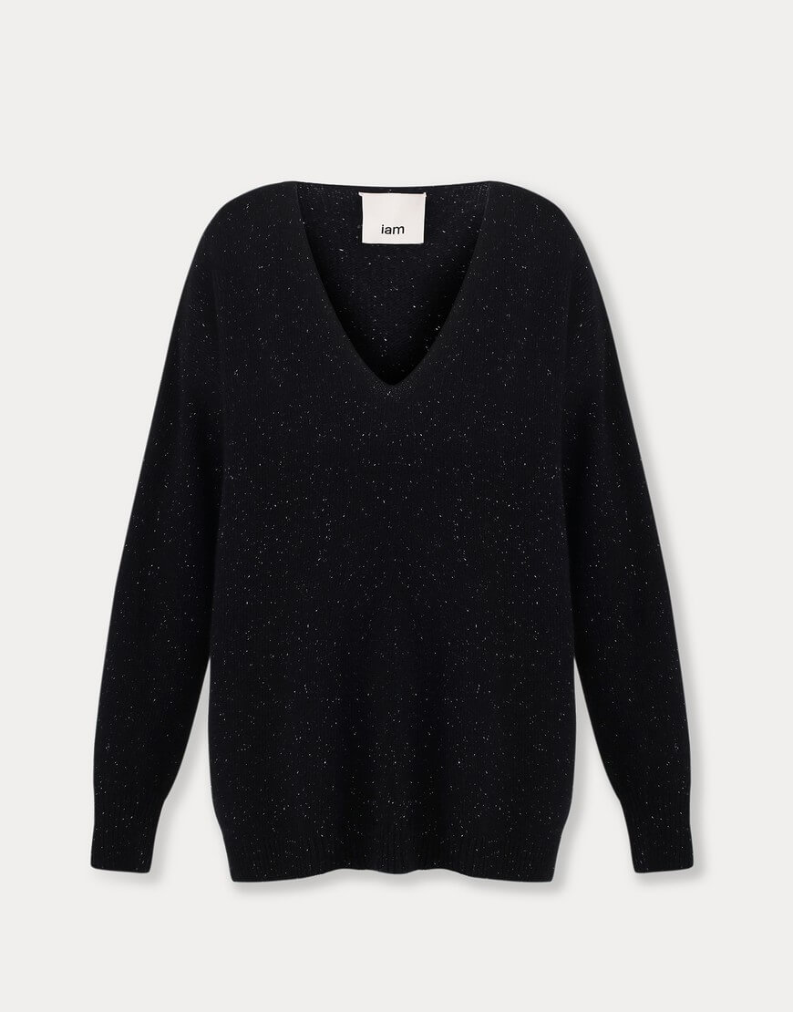 Оверсайз светр прямого крою, виконаний з ніжного мериносу. Спущене плече та V-подібний виріз.