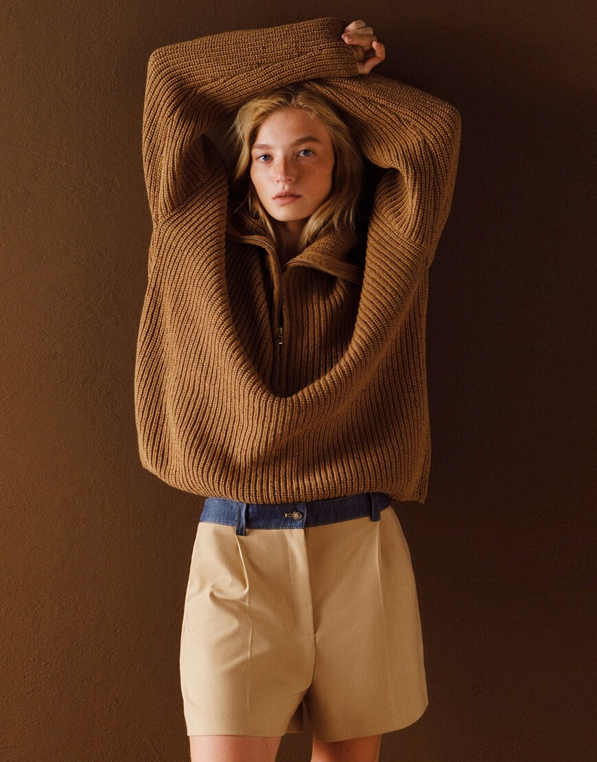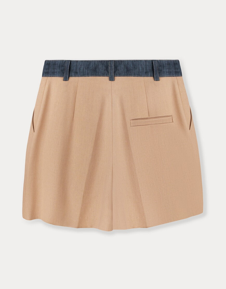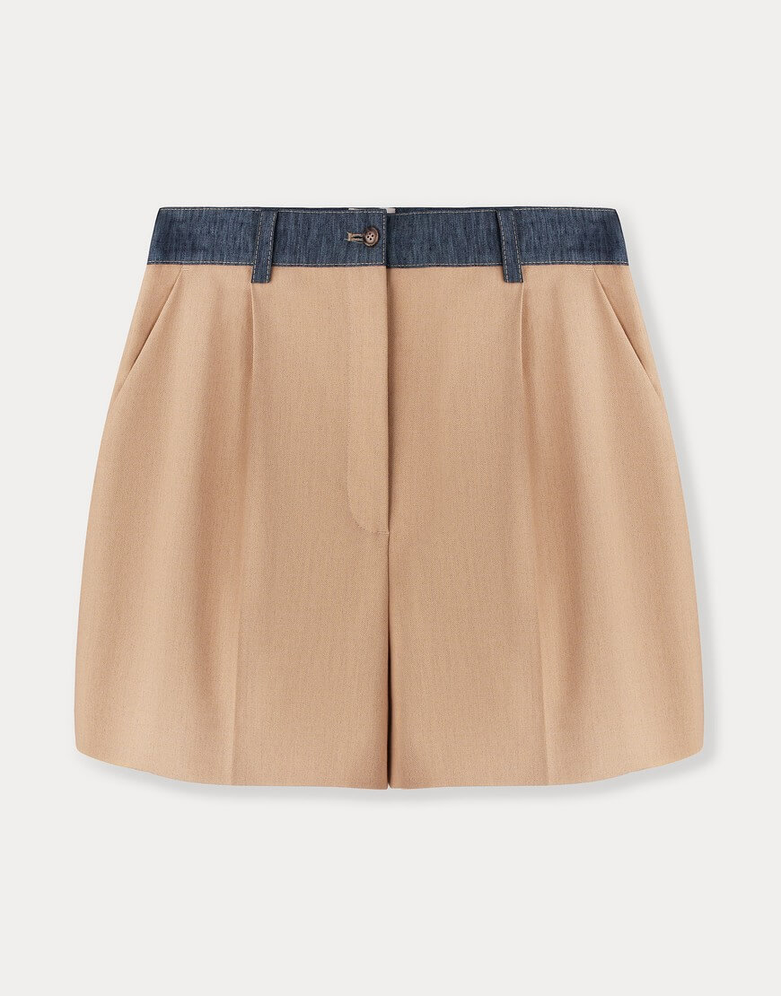 Доставка впродовж 5-7 робочих днівШорти середньої посадки, виготовлені із суміші м’якої вовни та віскози. Прикрашені джинсовим поясом.