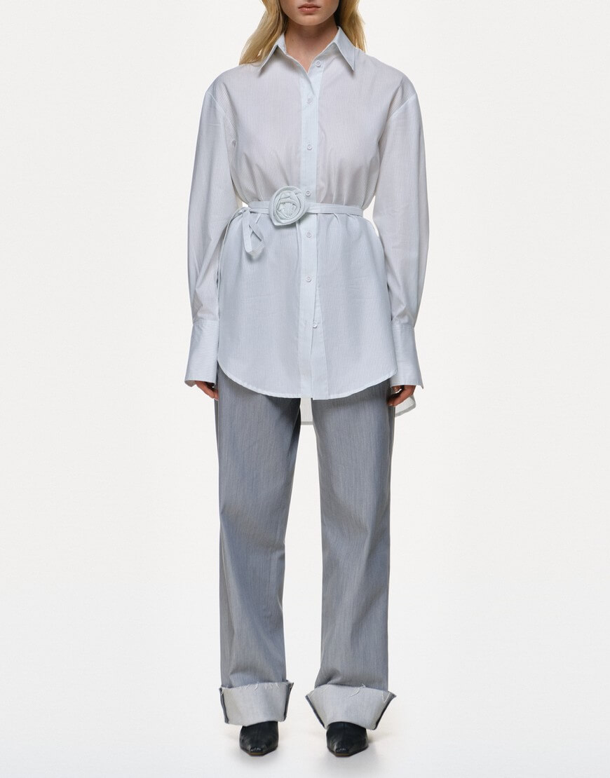 Джинси прямого крою з середньою посадкою, виконані з м‘якого котону. Оздоблені шкіряною біркою з логотипом ззаду.