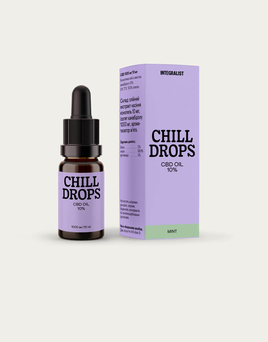 Chill Drops 10% — ідеальна концентрація для першого знайомства із CBD. Підійде початківцям для загального розслаблення та оздоровлення.