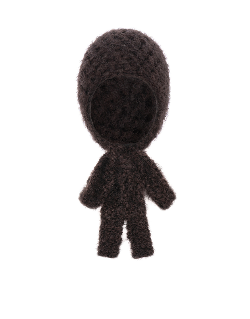 М’яке і пухнасте плетіння створює об’ємну форму з декоративним бантом.