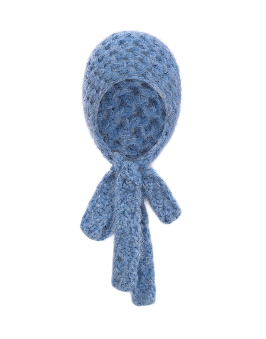 М’яке і пухнасте плетіння створює об’ємну форму з декоративним бантом.