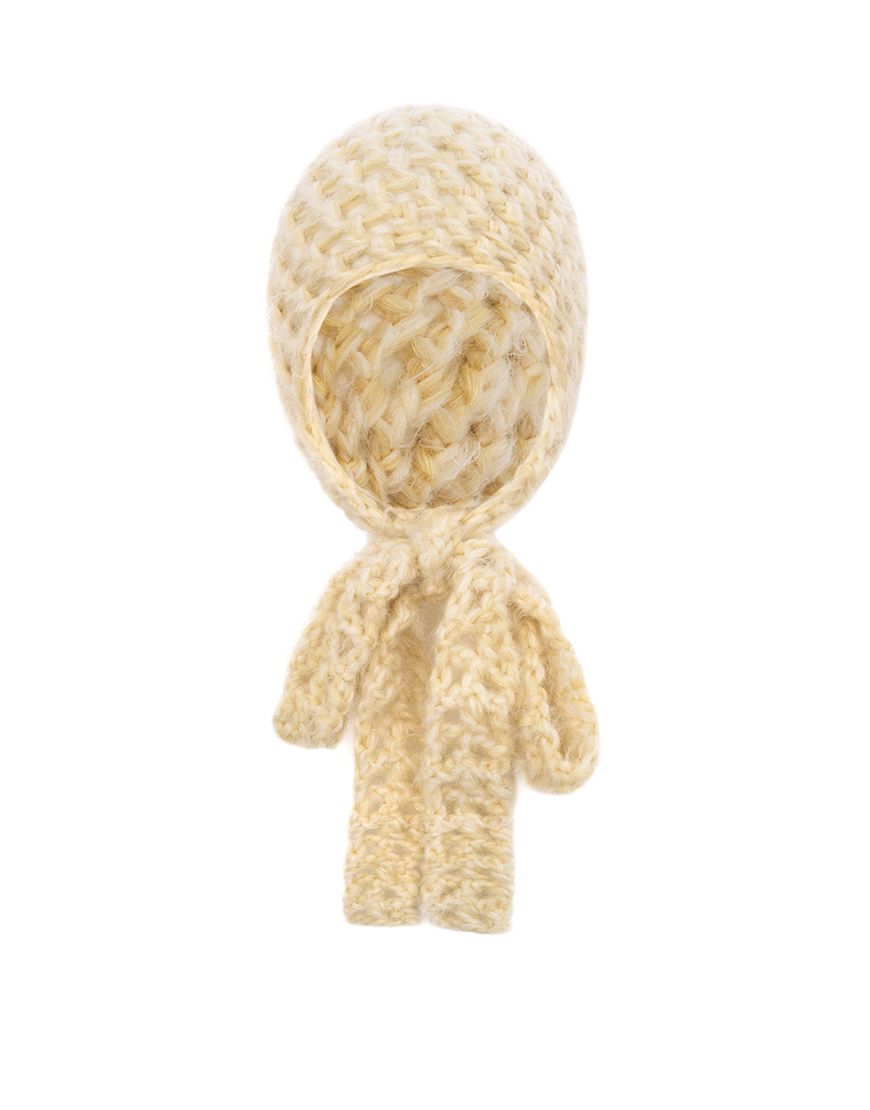 М’яке і пухнасте плетіння створює об’ємну форму з декоративним бантом.