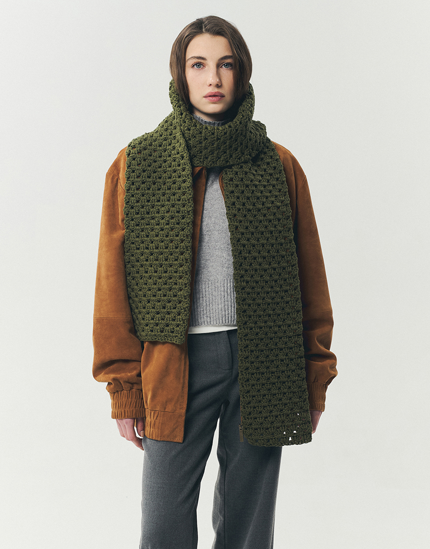 Доставка протягом 3-5 робочих днівДовгий шарф із мериносової вовни, виконаний у техніці кроше.