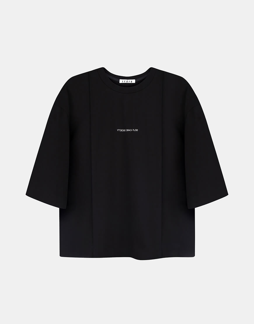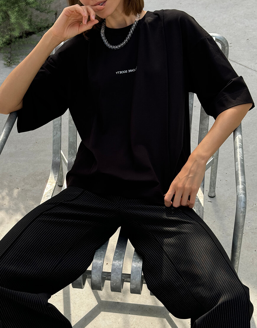 Доставка впродовж 3-5 робочих днівЧорна об’ємна футболка з реверсним принтом ‘self-care’