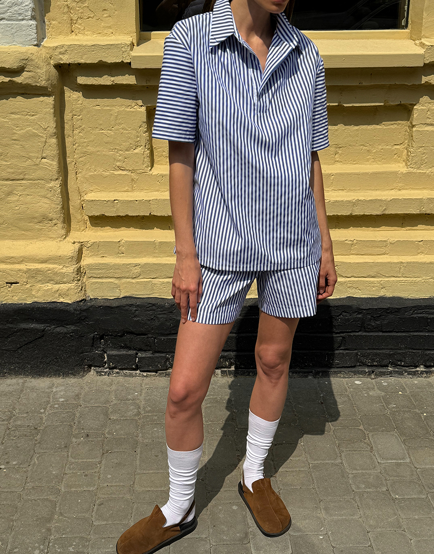 Доставка впродовж 3-5 робочих днівСмугасті бавовняні шорти з еластичним поясом і шовковими ґудзиками