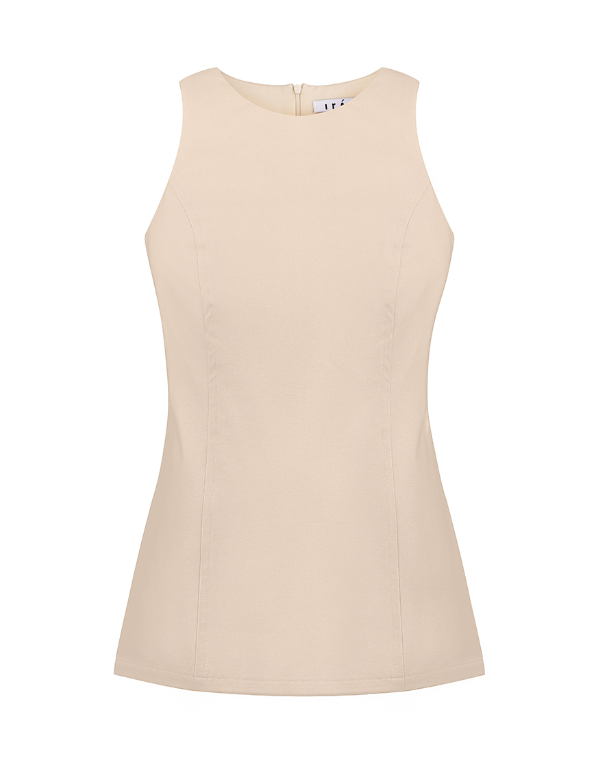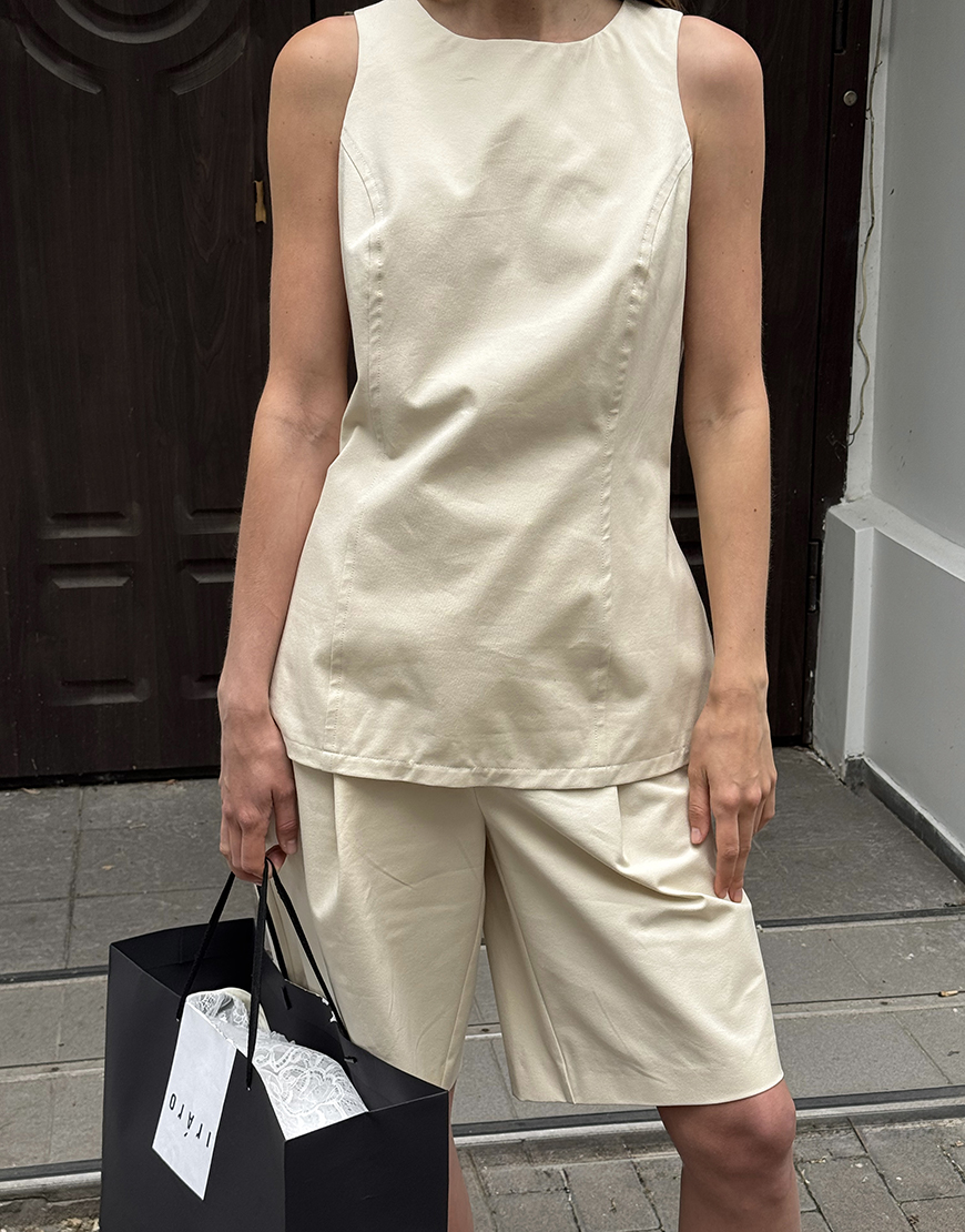 Приталений бавовняний топ з виточками, круглим вирізом , застібка на блискавку