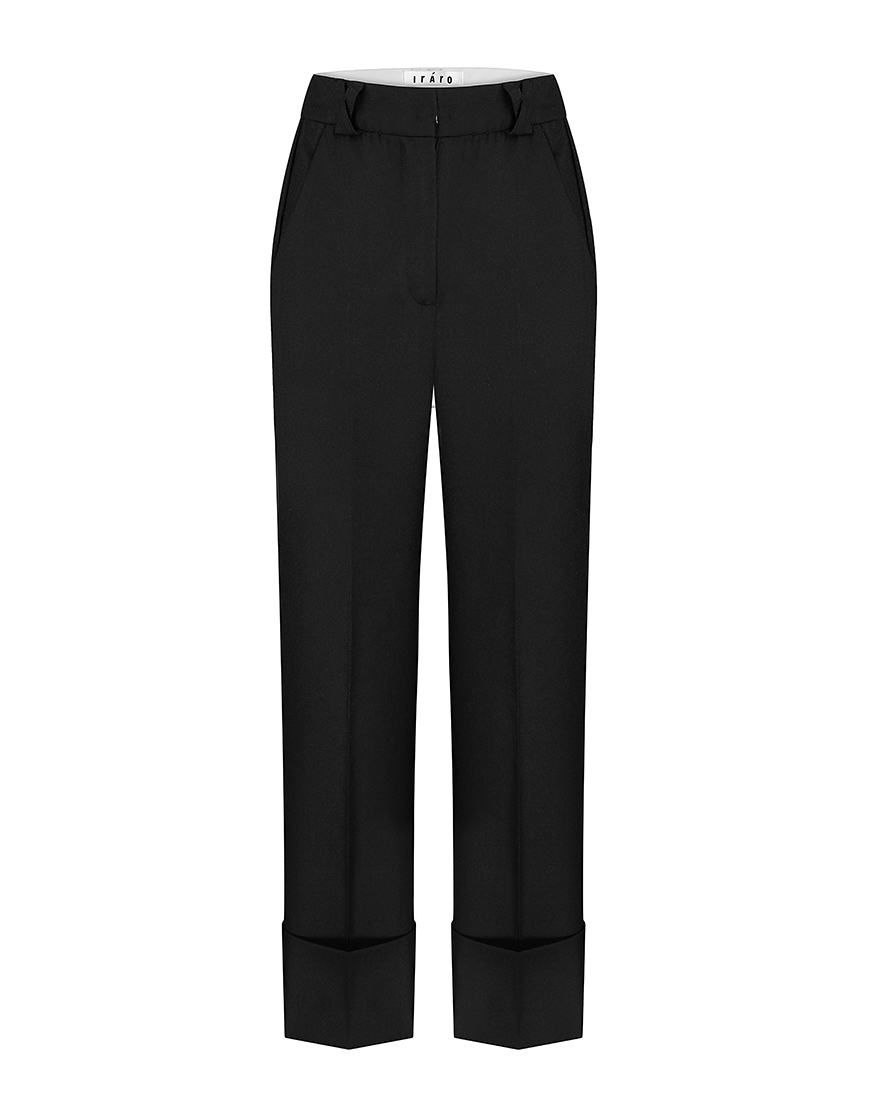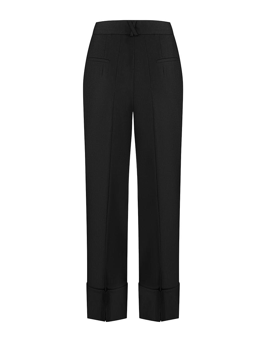 Код товару: 433188Брюки чорні з завищеною талією та декоратвною шлицею