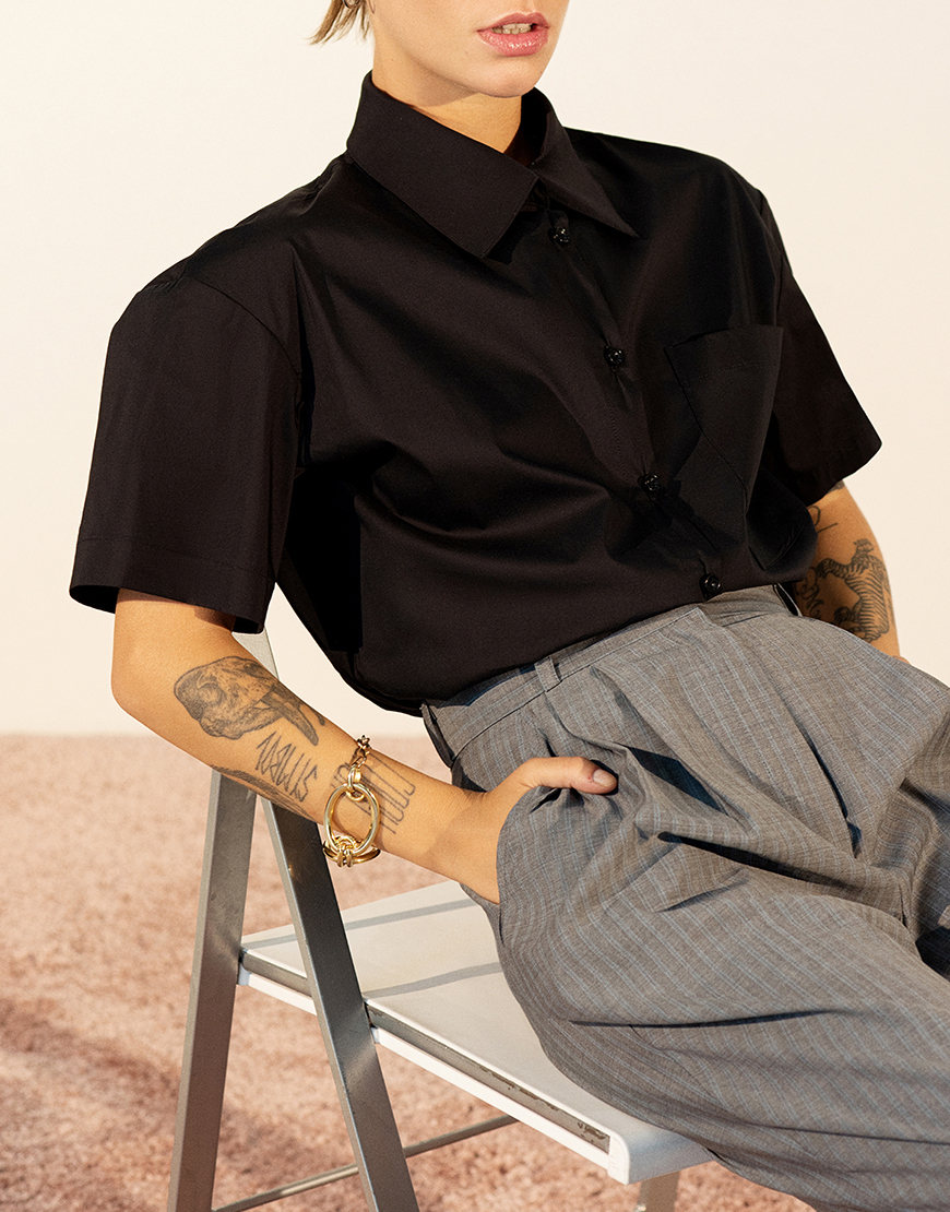 Сорочка чорна з коротким рукавом із бавовни.