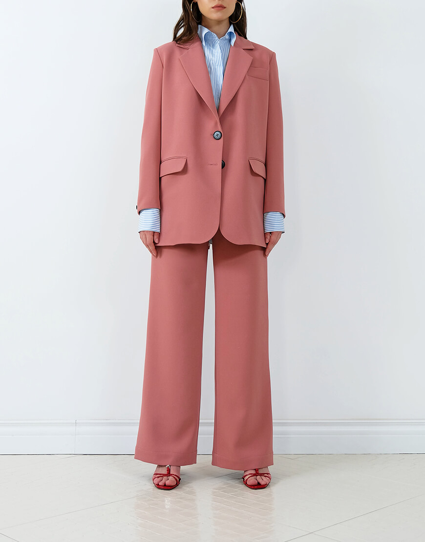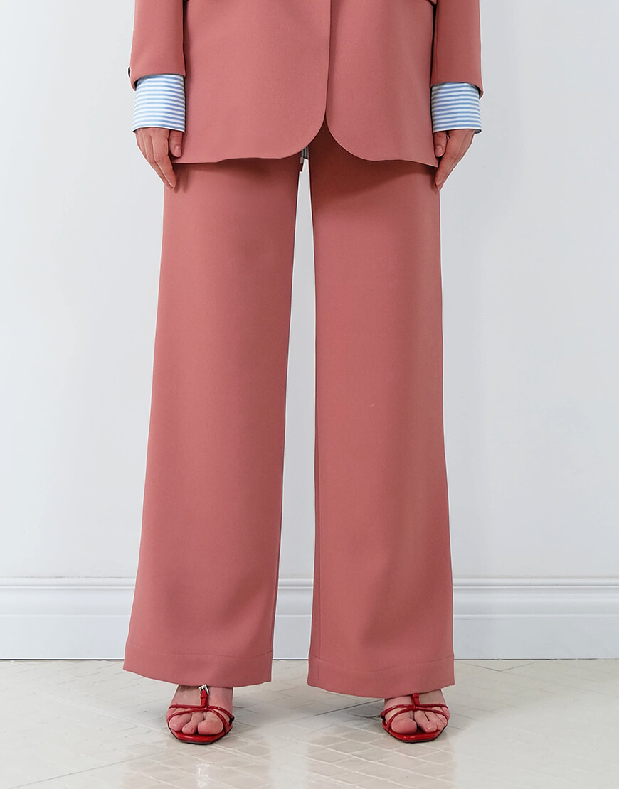 Штани з високою посадкою, широкими штанинами, кишенями в кораловому кольорі.