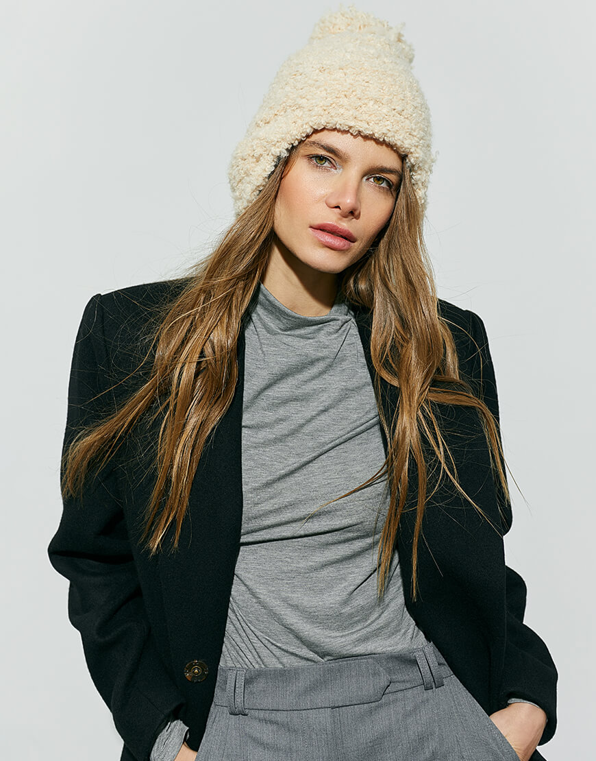 Доставка протягом 3-5 робочих днівВ’язана шапка з вовни мериноса зі зйомним помпоном.