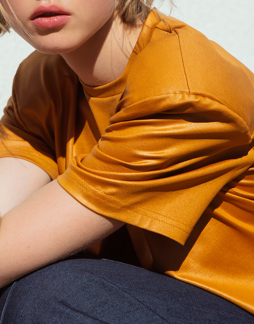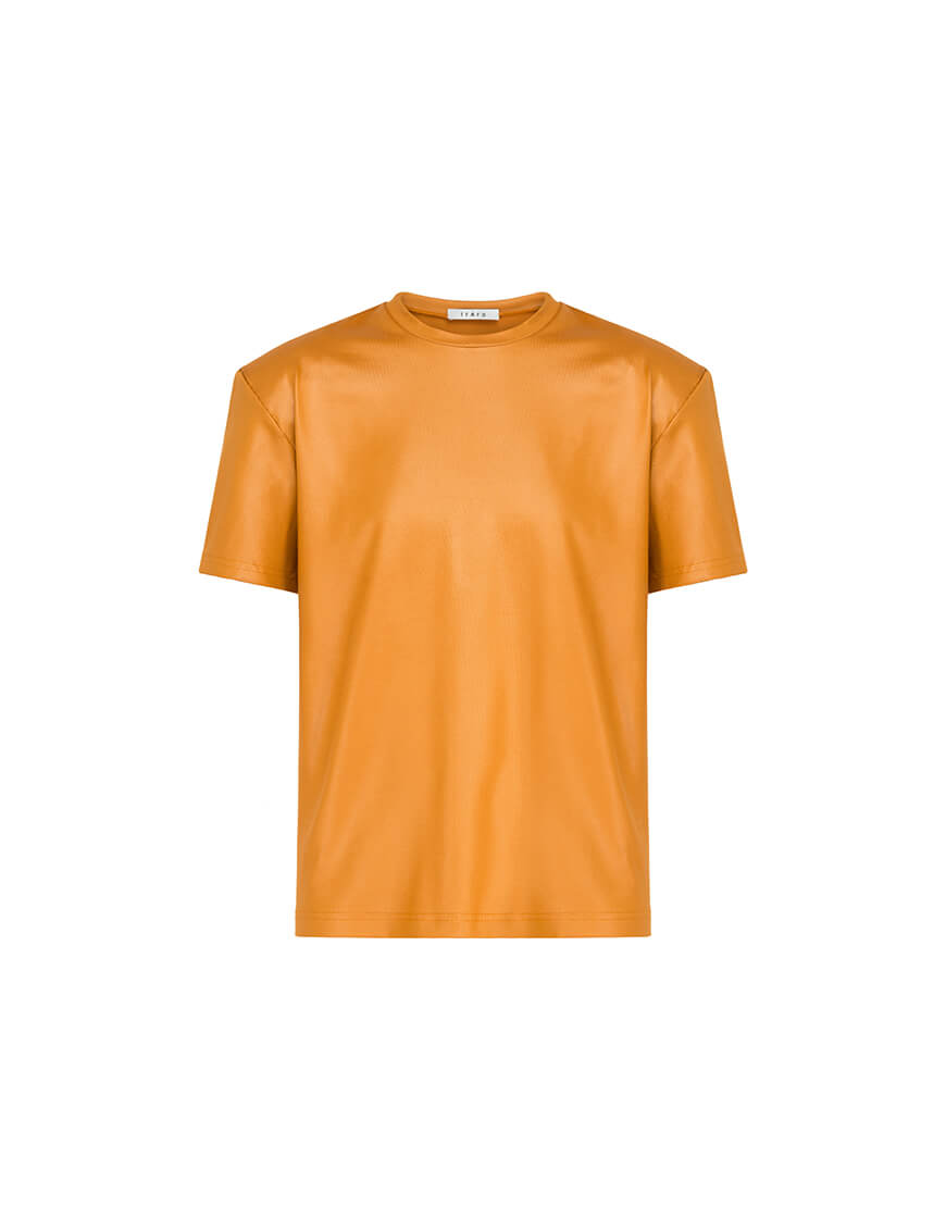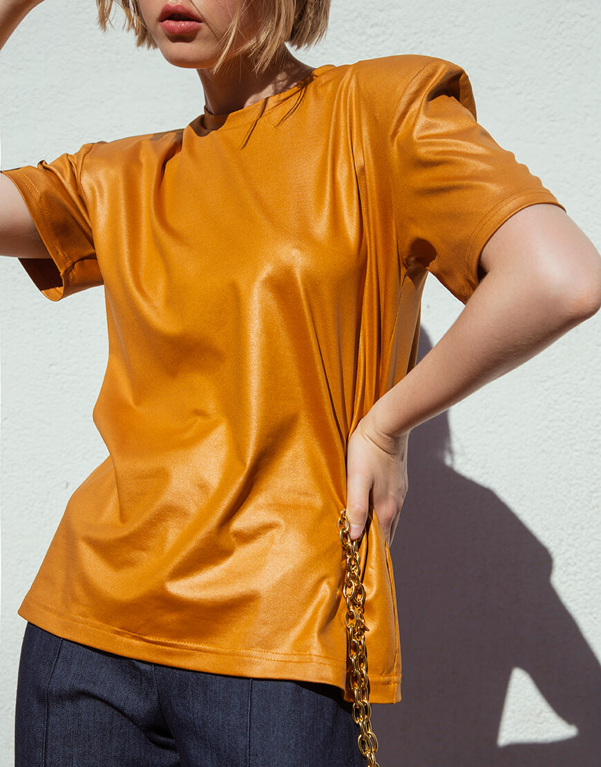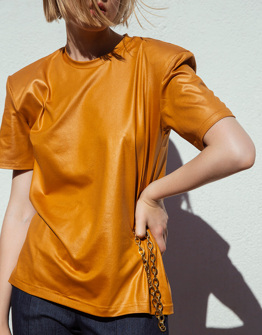 Помаранчева футболка з об’ємними плечима з бавовни.