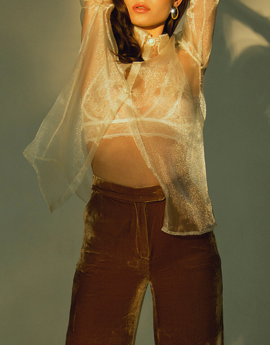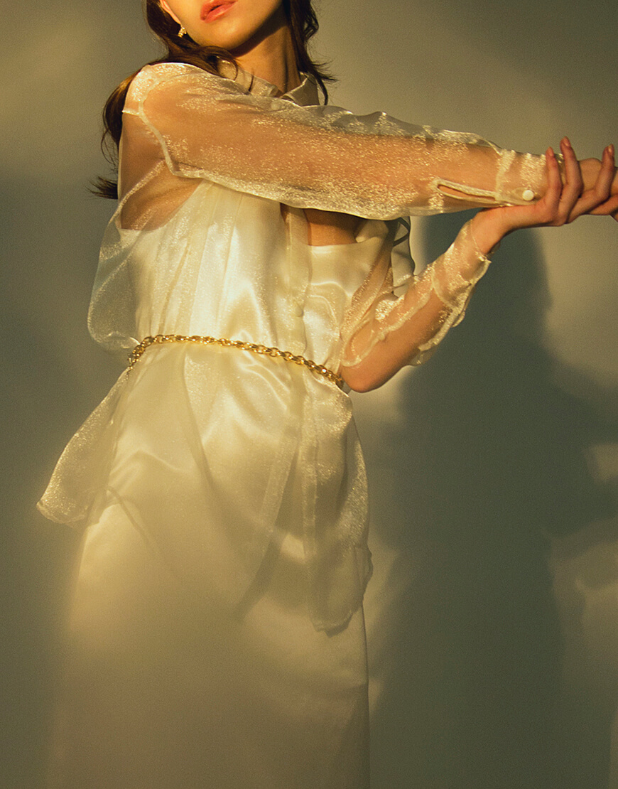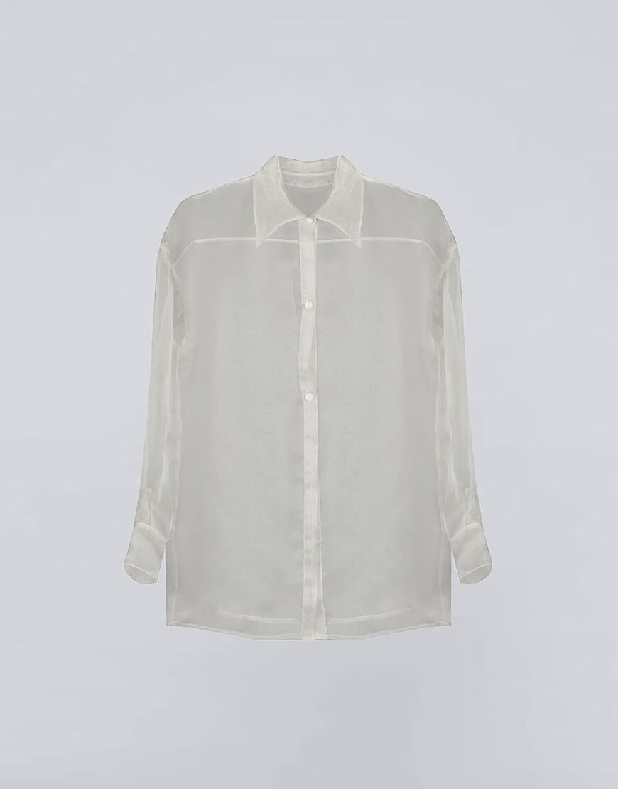 Сорочка прозора з органзи з трьома ґудзиками.