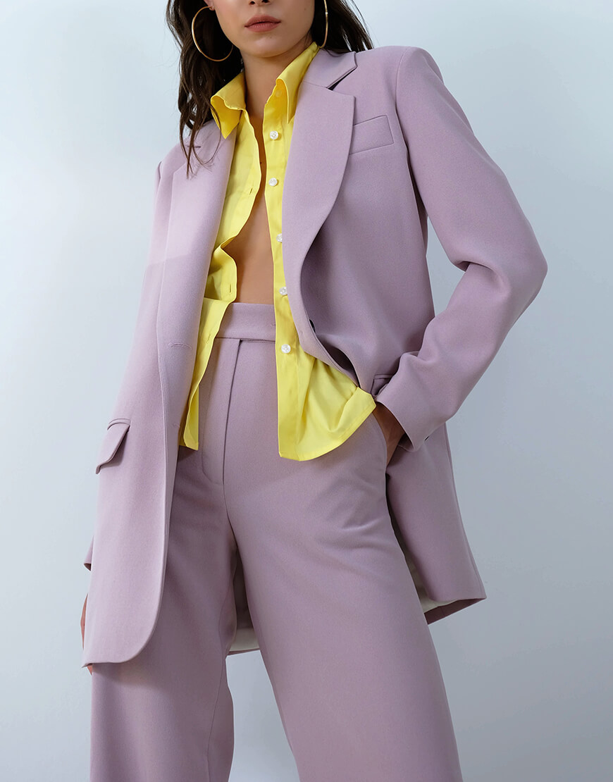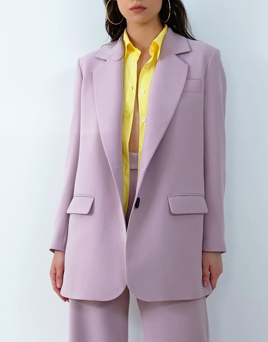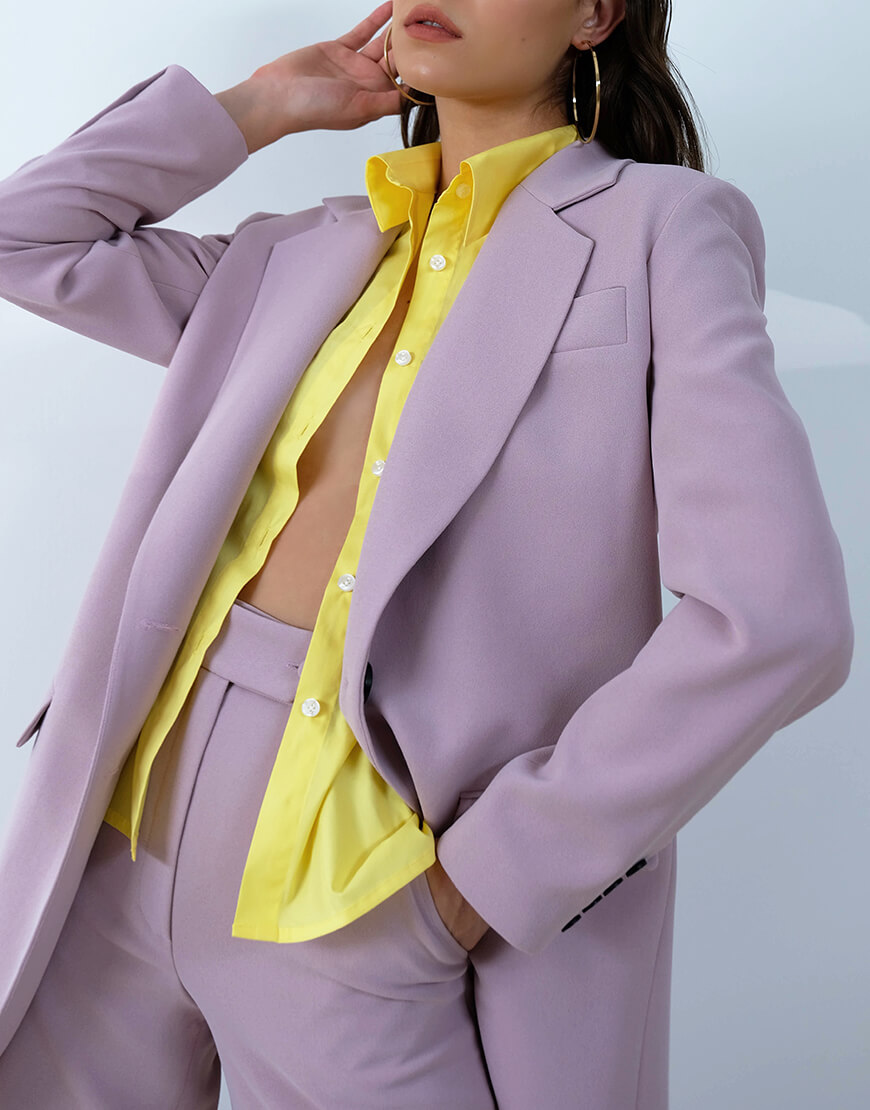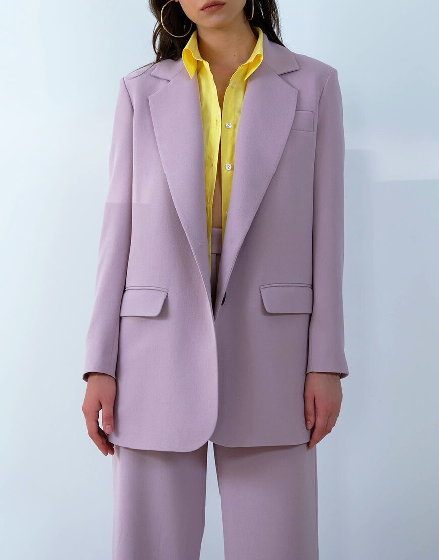 Ліловий жакет, прямого крою з карамнами і двома ґудзиками