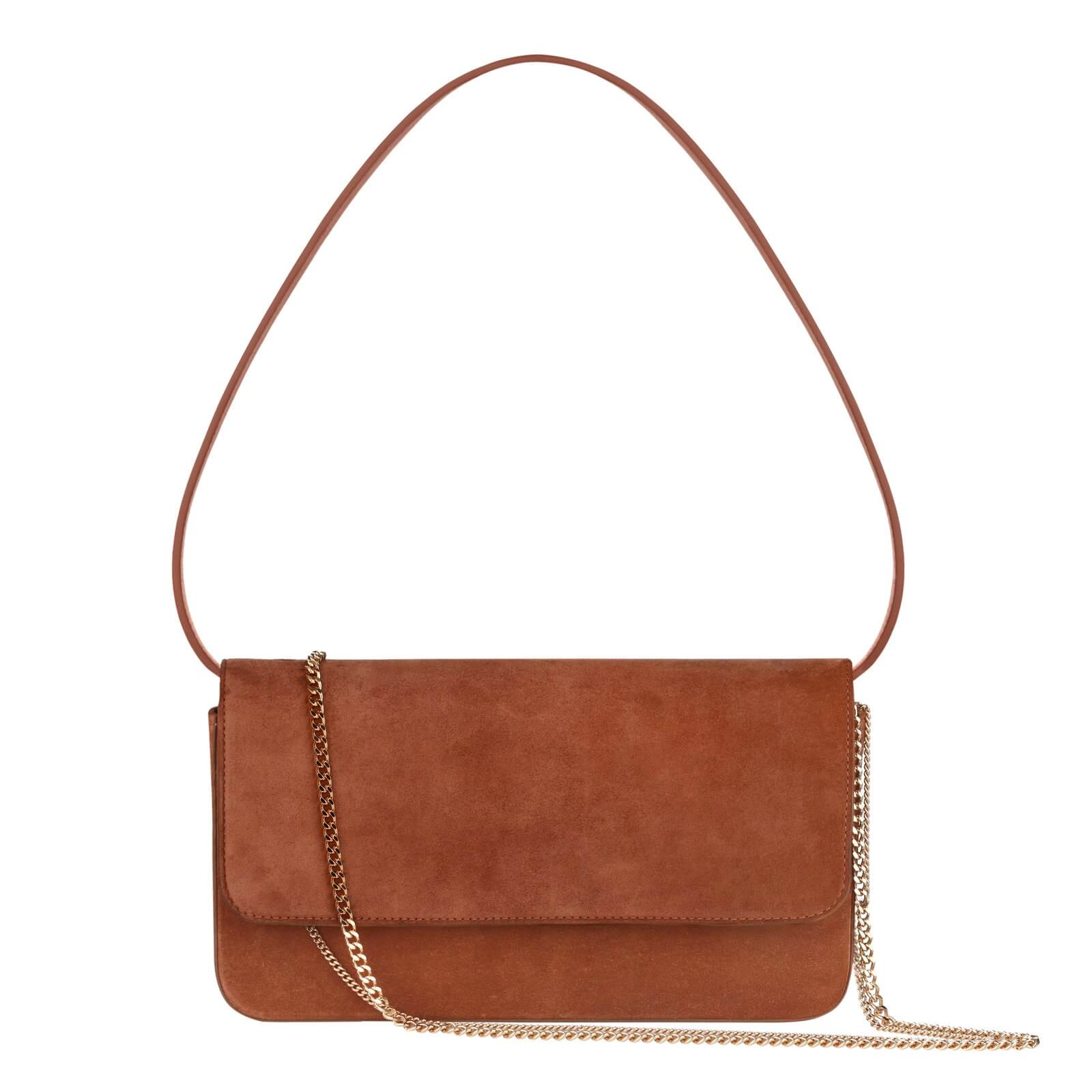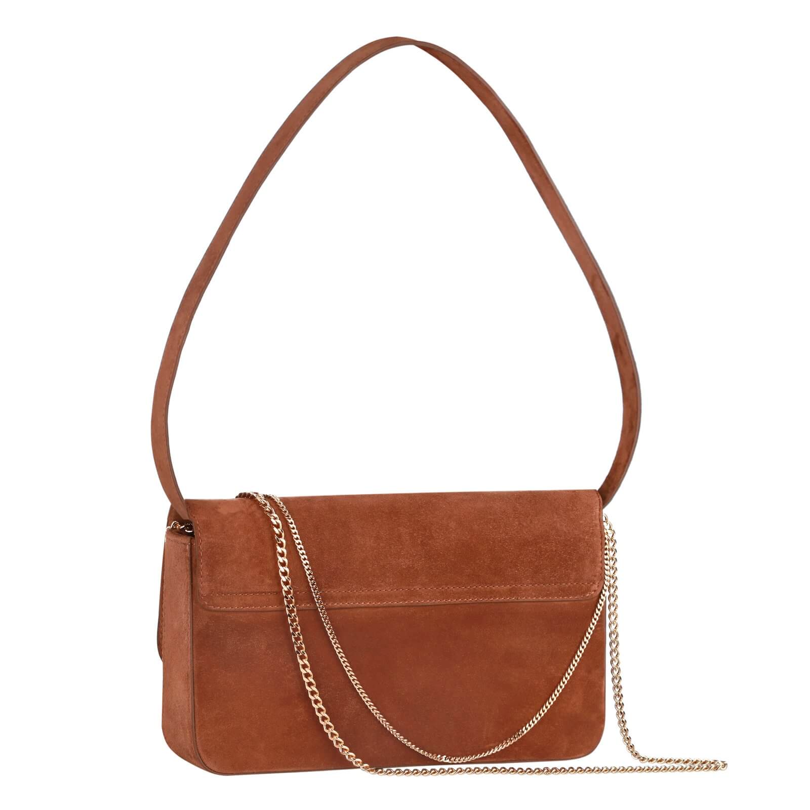 Сумка з натуральної замші, з 3 ручками різної довжини (1 шкіряна і 2 ланцюги різної довжини і ширини). Параметри 27x15x5 см.