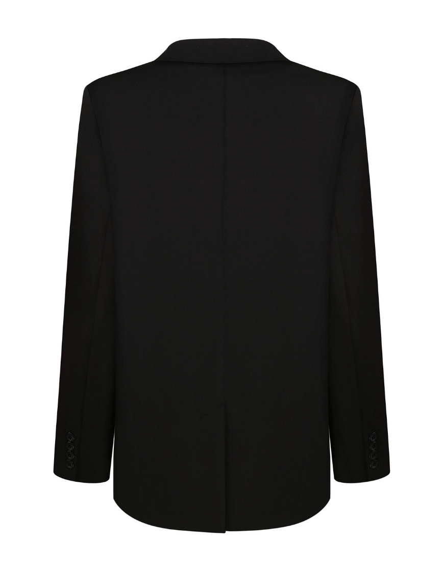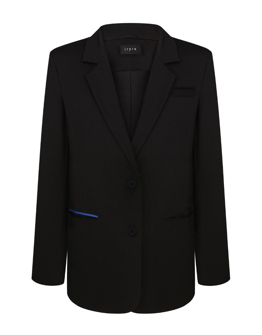 Чорний жакет прямого крою з яскравим елементом на кишені