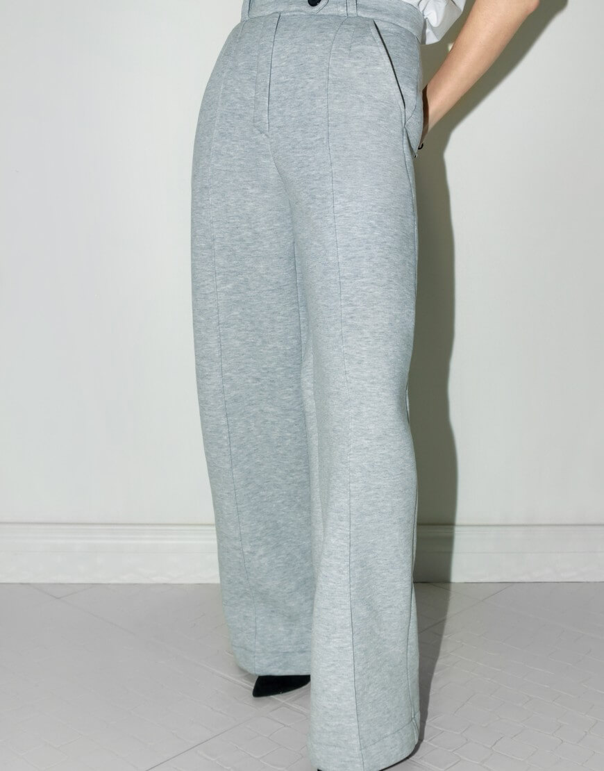 Сірі брюки з високою посадкою, блискавкою та кишенями