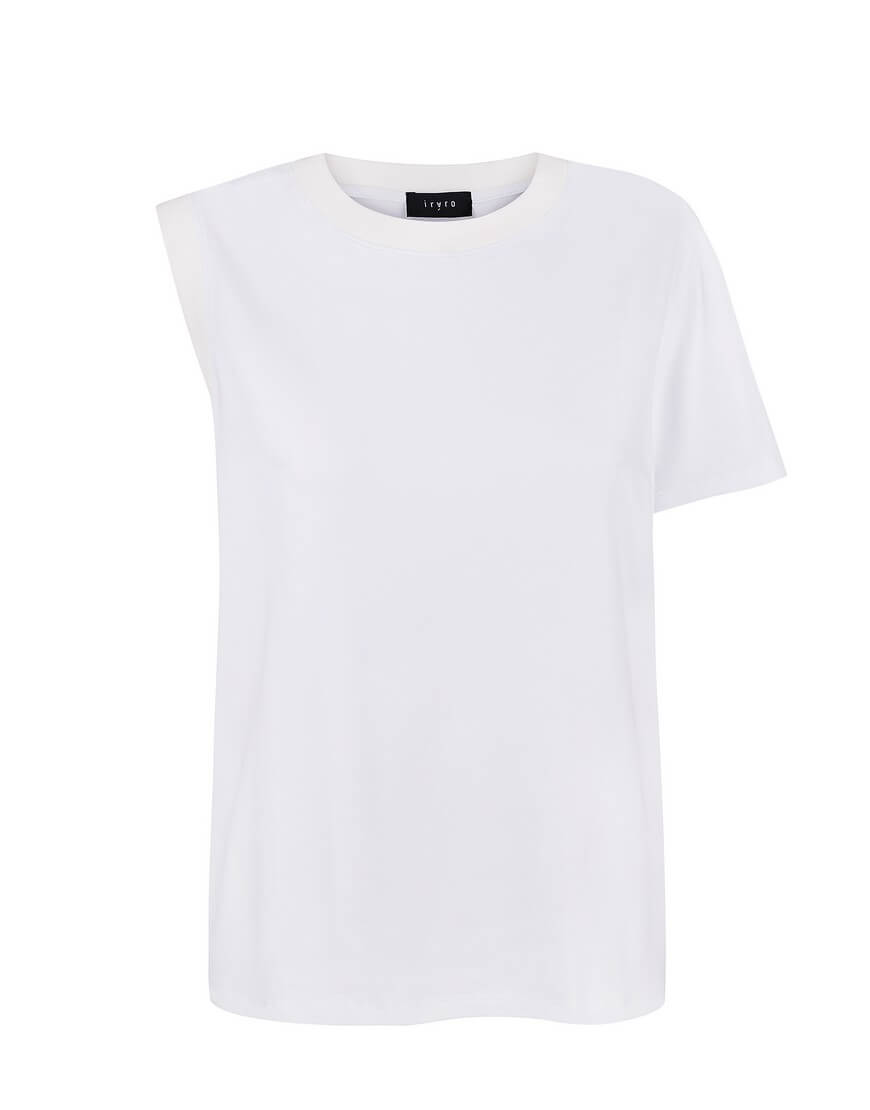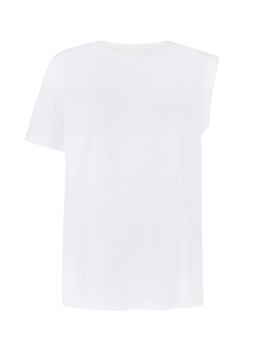 Біла футболка прямого крою з одним рукавом та круглим вирізом