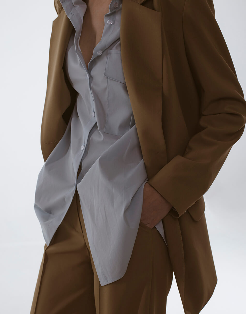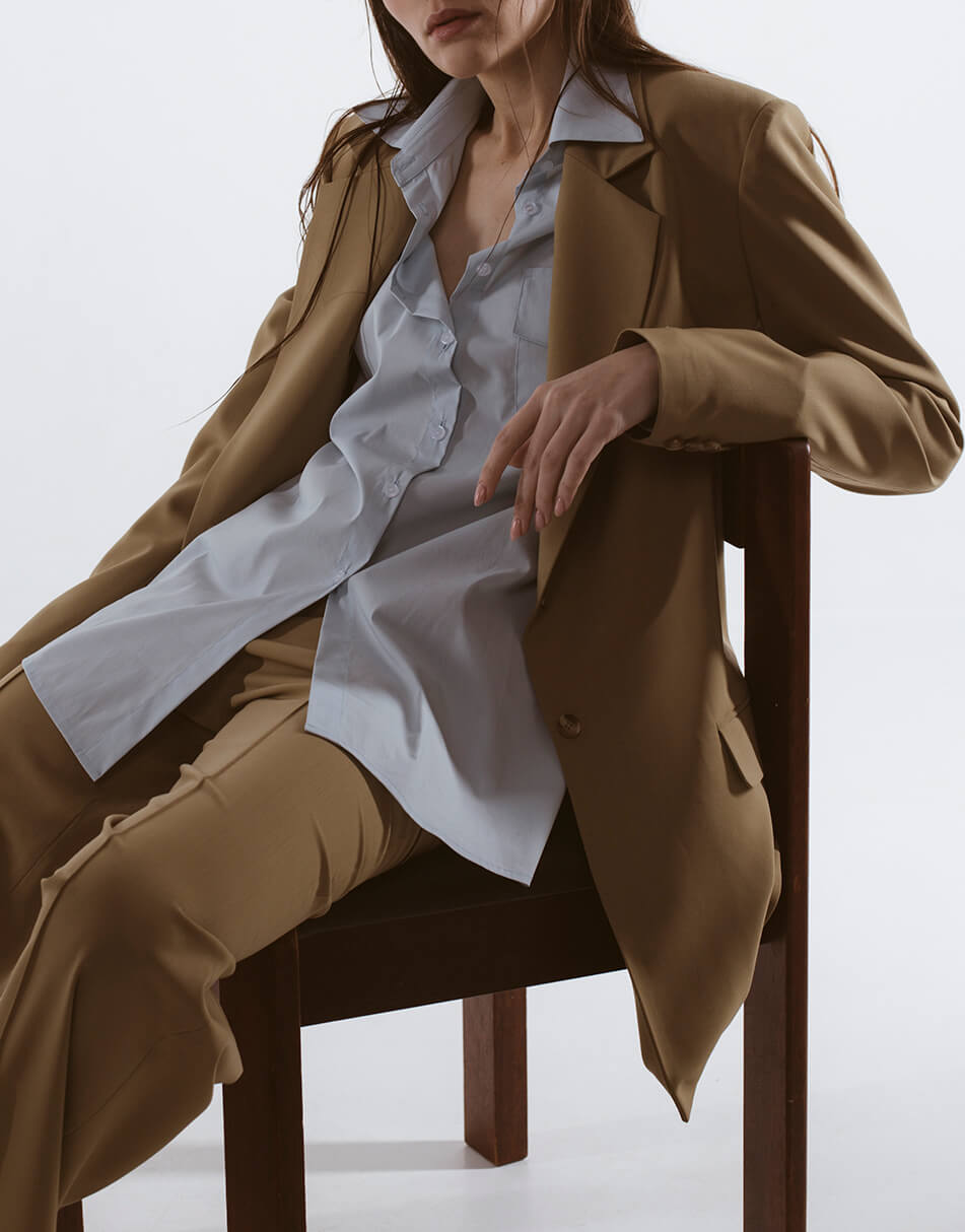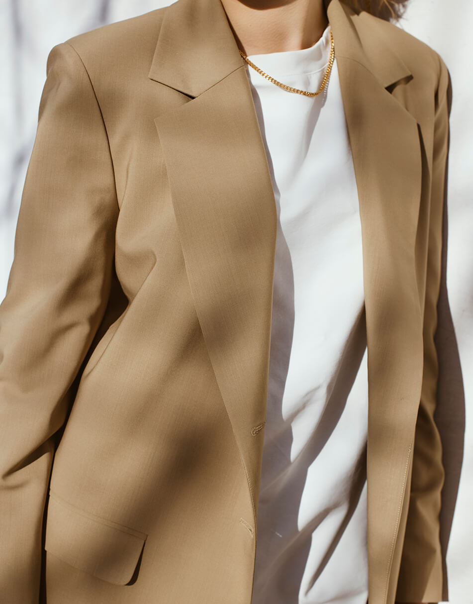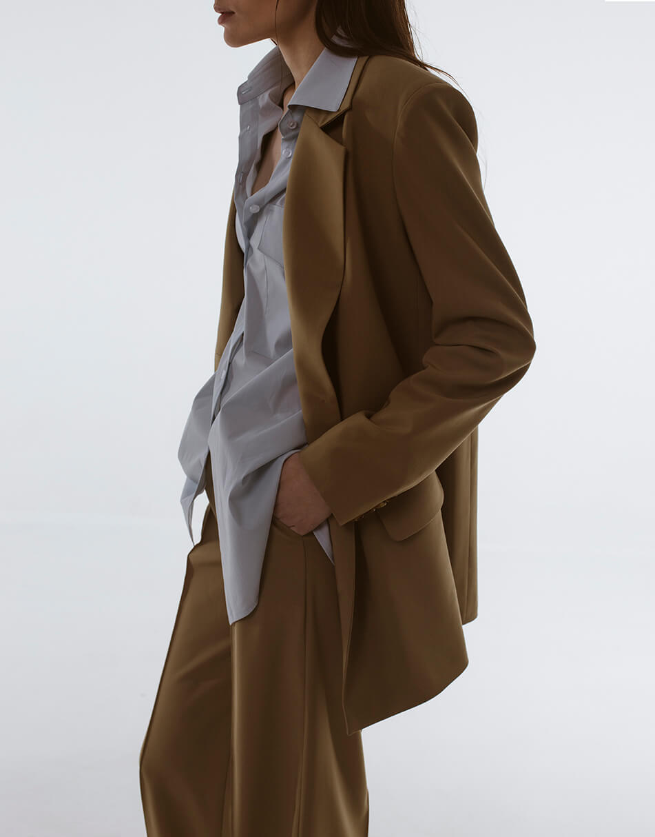 Бежевий жакет, з кишенями.