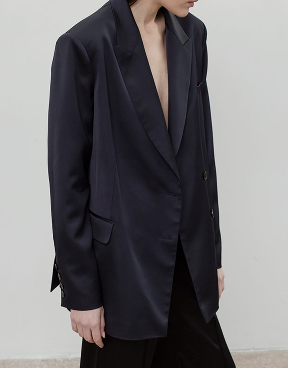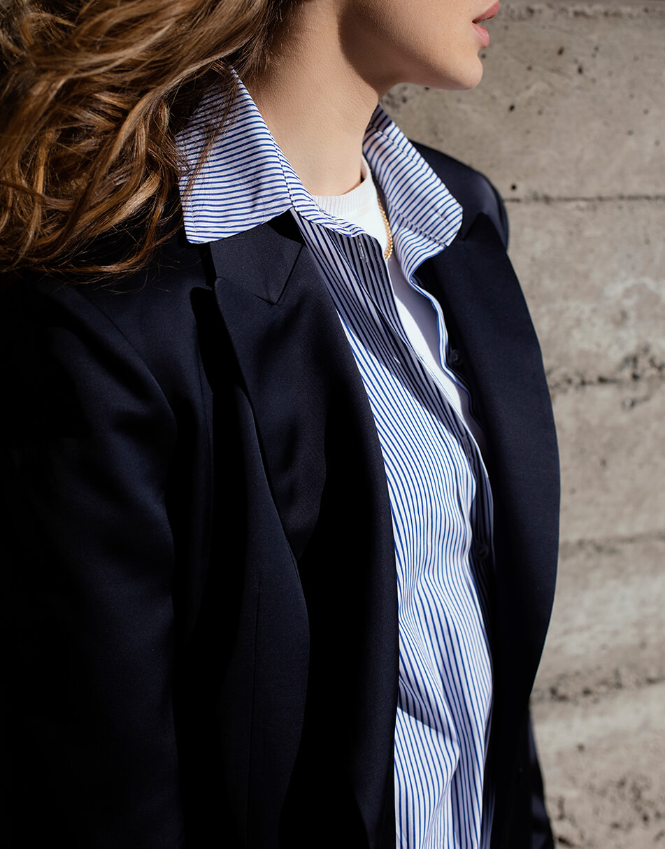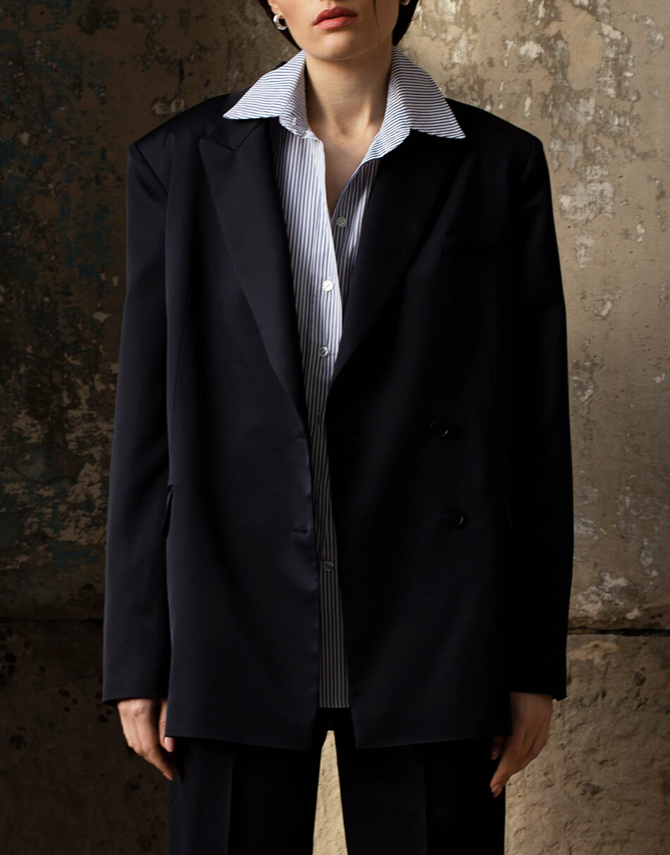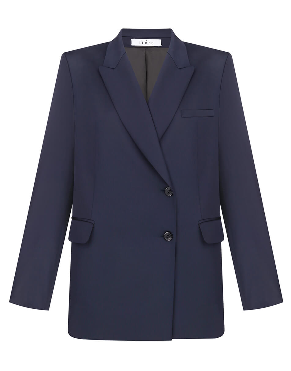 Жакет прямого крою з ґудзиками, синього кольору.