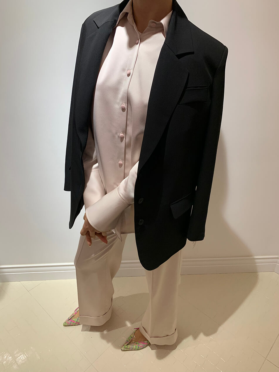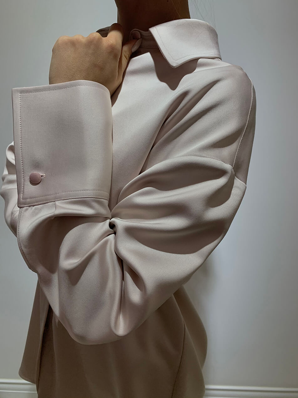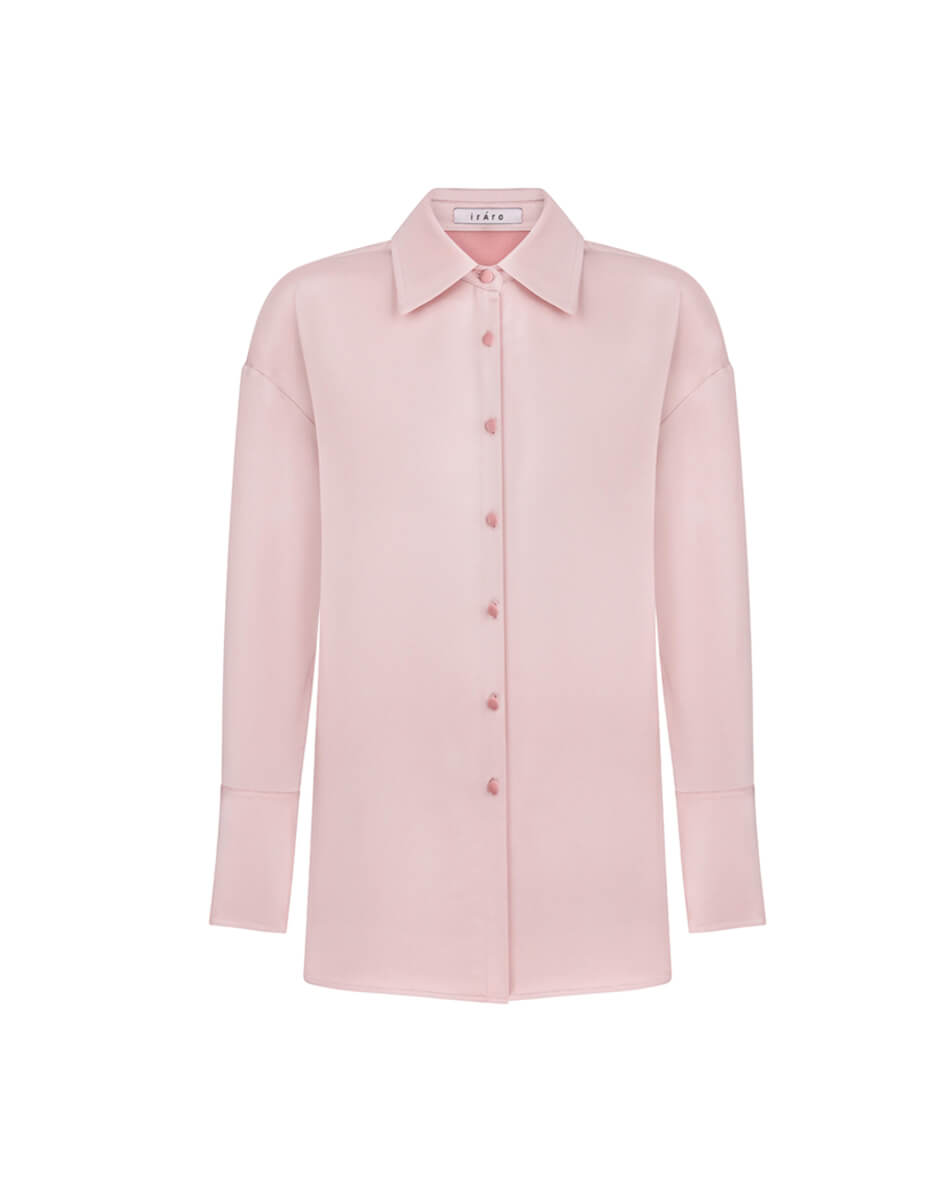 Рожева сорочка з широкими манжетами.