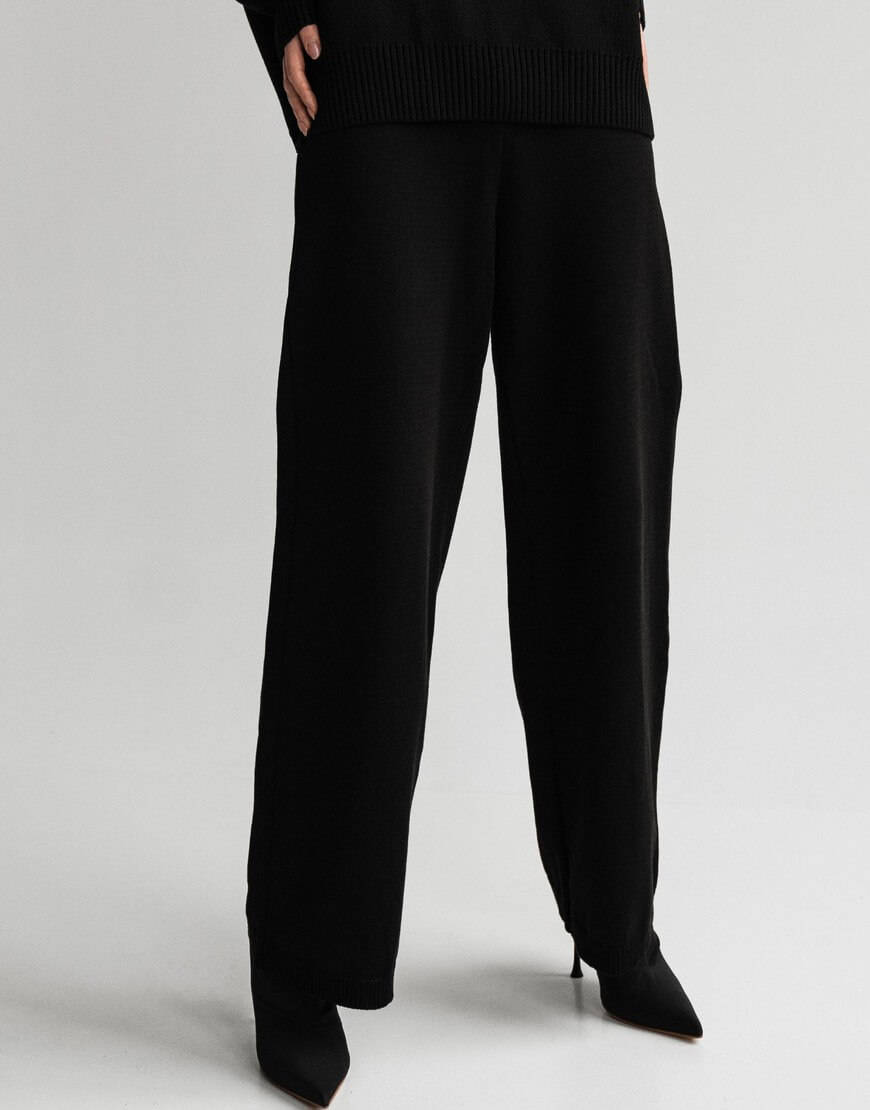 Штани виконані з м’якої та приємної до тіла пряжі. Носіть їх з пуховикам, будь-якими светрами чи затишним худі з нашої колекції. Максимально прості, з еластичним поясом та без кишень. Дана модель штанів підкреслює талію завдяки високій посадці.