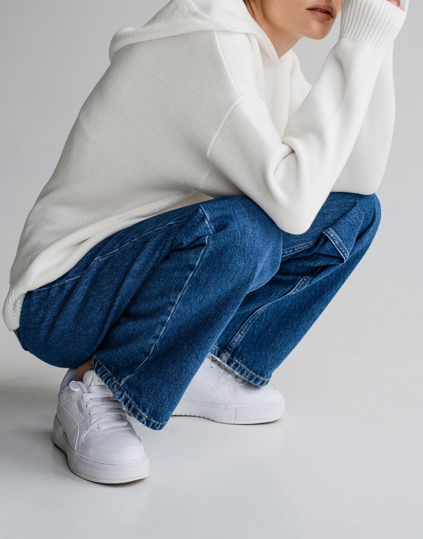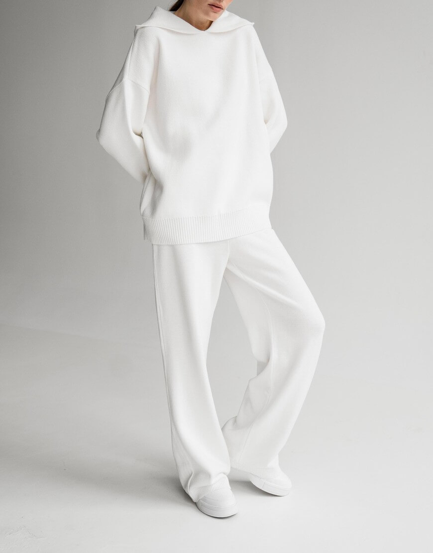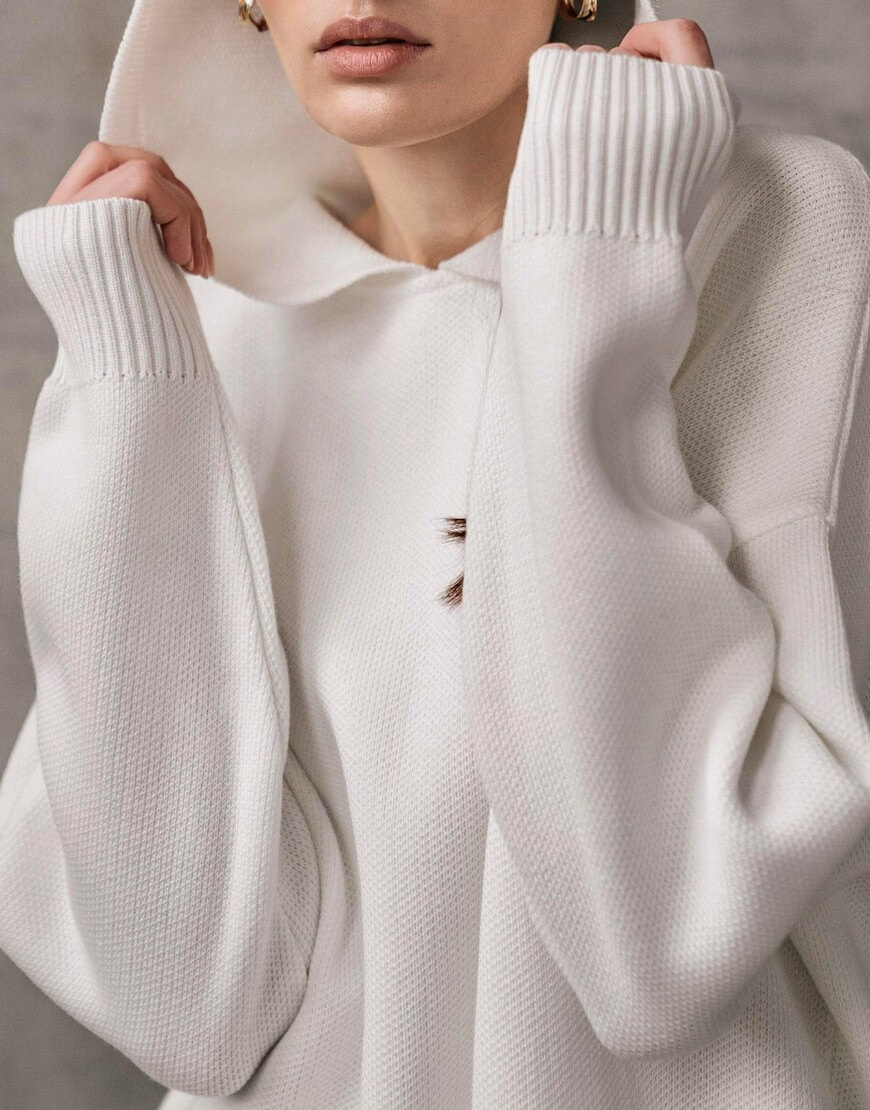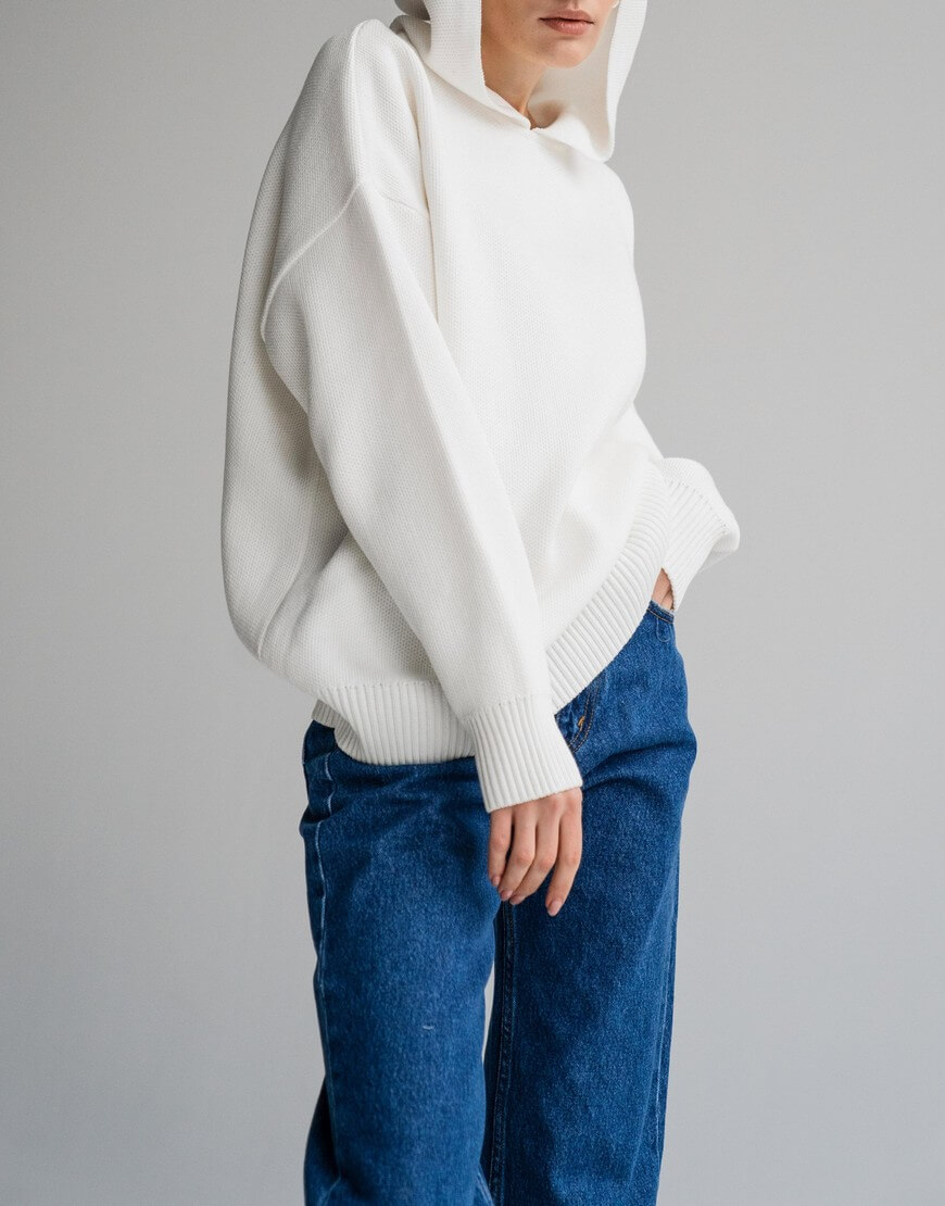 Незамінний в прохолодну погоду худі, виконаний з м’якої та приємної до тіла пряжі. Модель вільного крою зі спущеною лінією плеча та капюшоном. Воно не обмежує рухи та гарно доповнює образи з пальто та пуховиками. Образ з худі завершать джинси, легінси чи трикотажні штани, які можна придбати в комплекті.