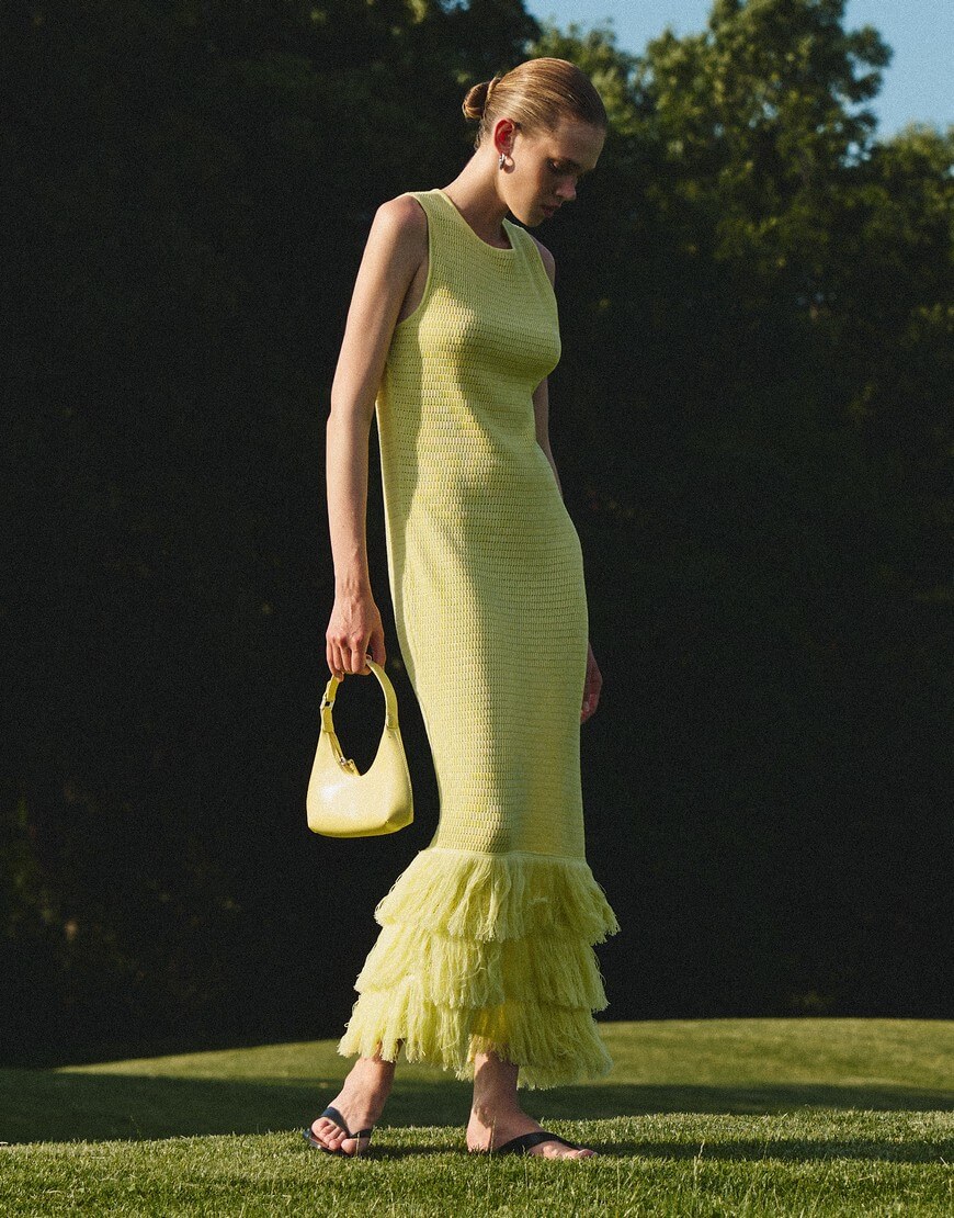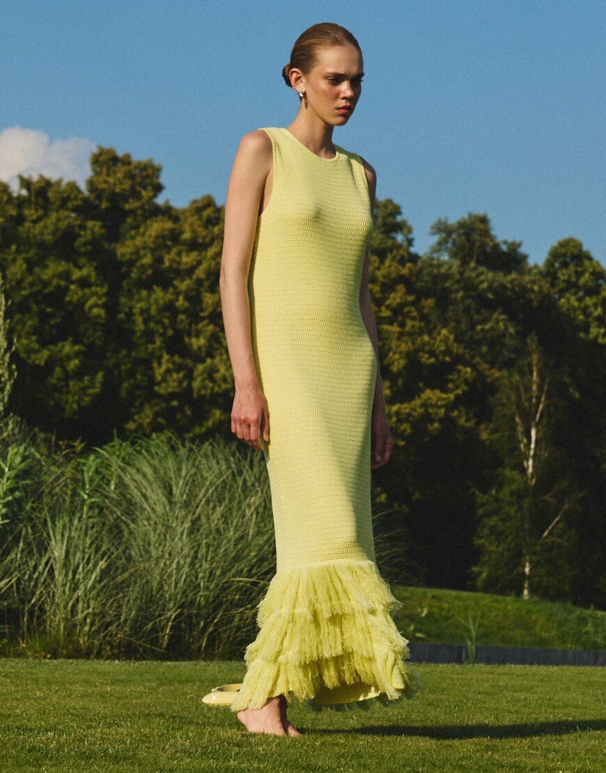 Доставка впродовж 2-5 робочих днівАжурна сукня прямого силуетного крою, оздоблена потрійною бахромою. Позаду сукні передбачено розріз.