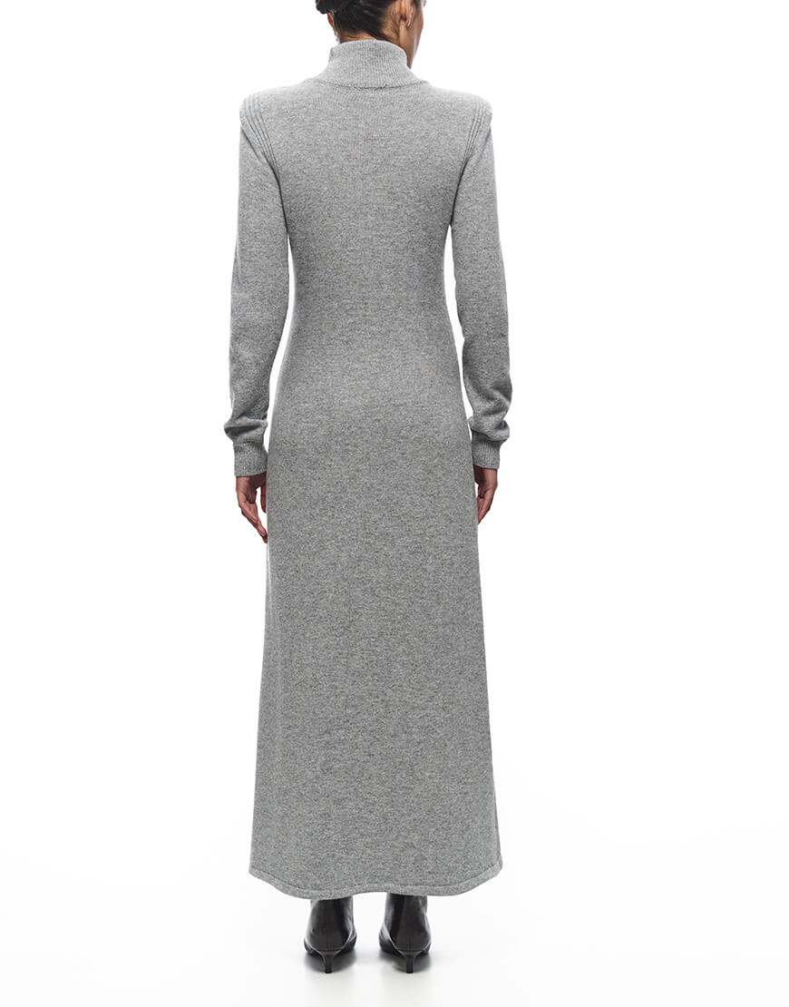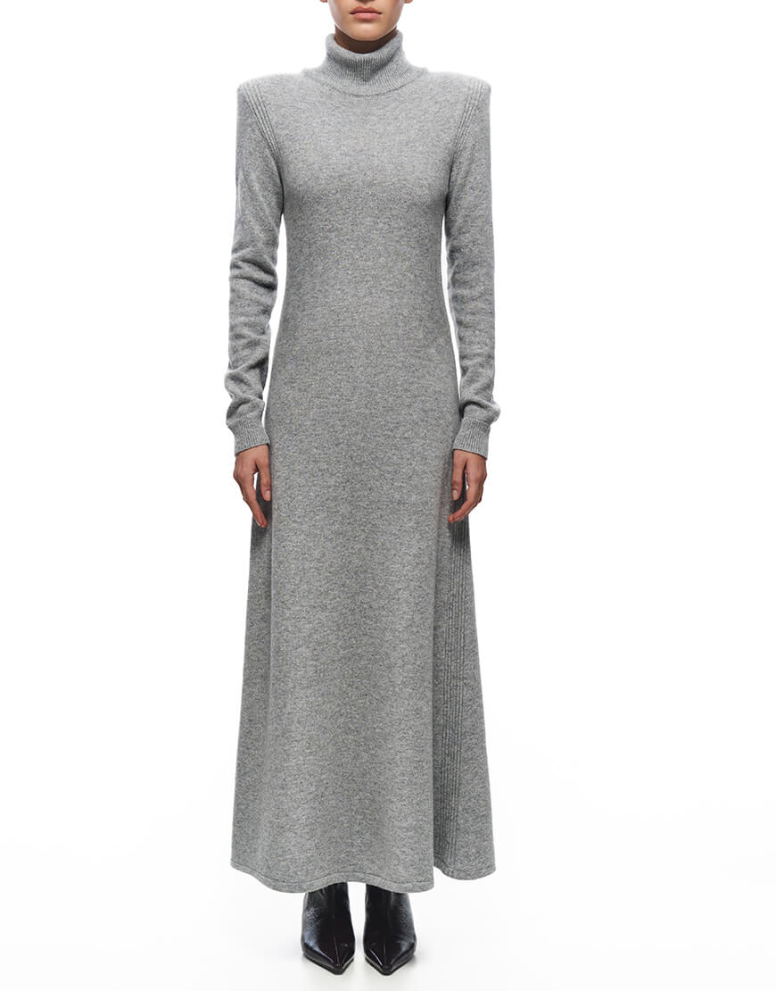 Лаконічна модель сукні – максі. Витонченість та елегантність сукні досягається за рахунок приталенго силуету та підкресленими акцентними плечима.