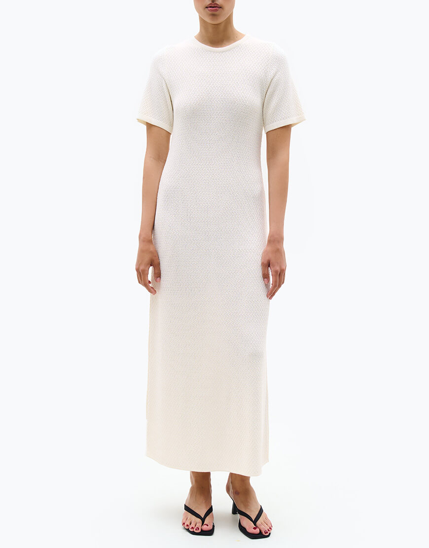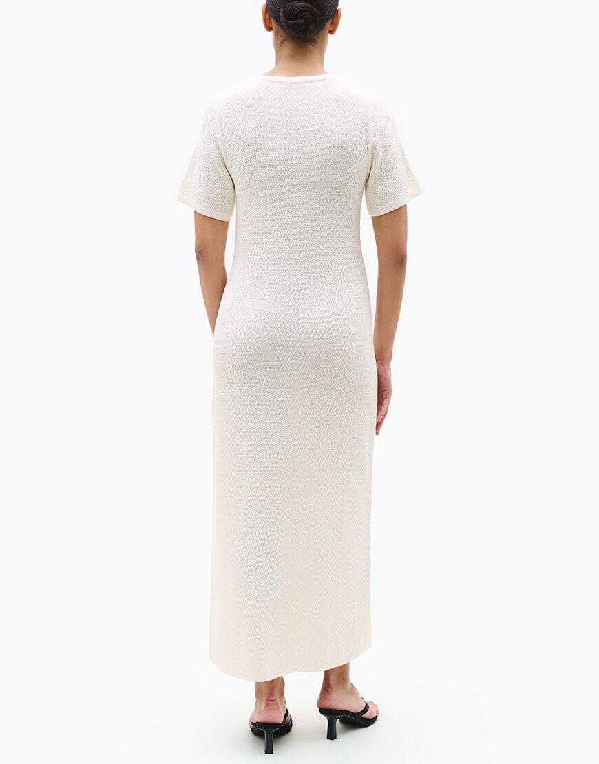 Сукня виконана у довжині максі, має виражену фактурну в’язку. Сукня приємно прилягає до тіла завдяки у складі віскози та бавовни. Дана модель сукні підійде як для повсякденних, так і для особливих подій.