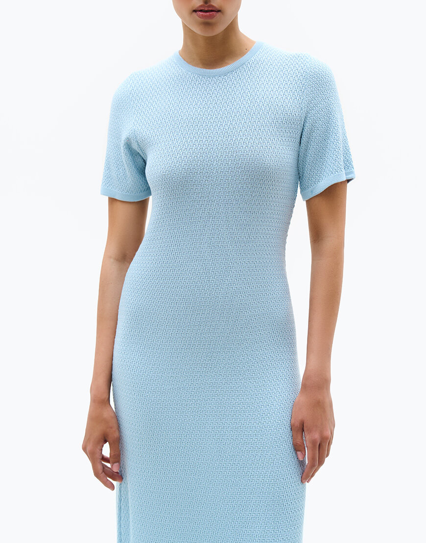 Сукня виконана у довжині максі, має виражену фактурну в’язку. Сукня приємно прилягає до тіла завдяки у складі віскози та бавовни. Дана модель сукні підійде як для повсякденних, так і для особливих подій.