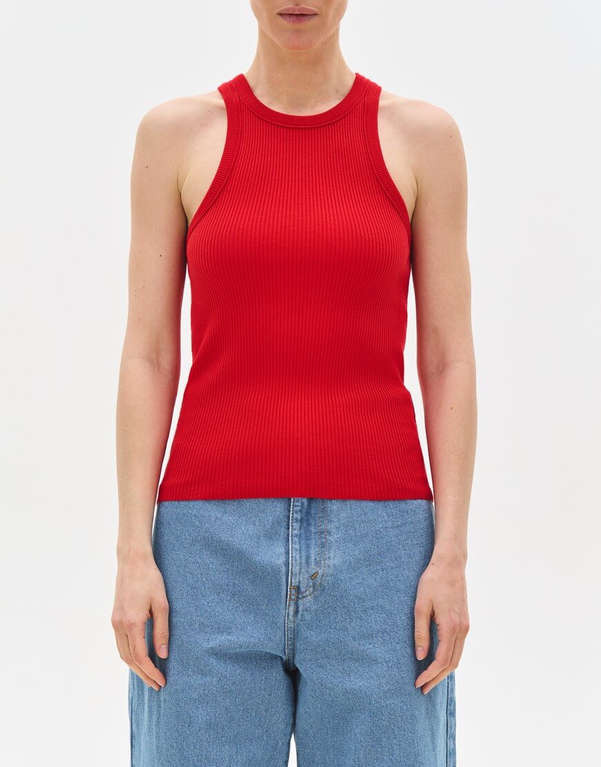 Повсякденна та універсальна майка з щільного трикотажу в рубчик. В основі пряжі – ніжна та приємна до тіла нитка з віскози стрейч та бавовни.