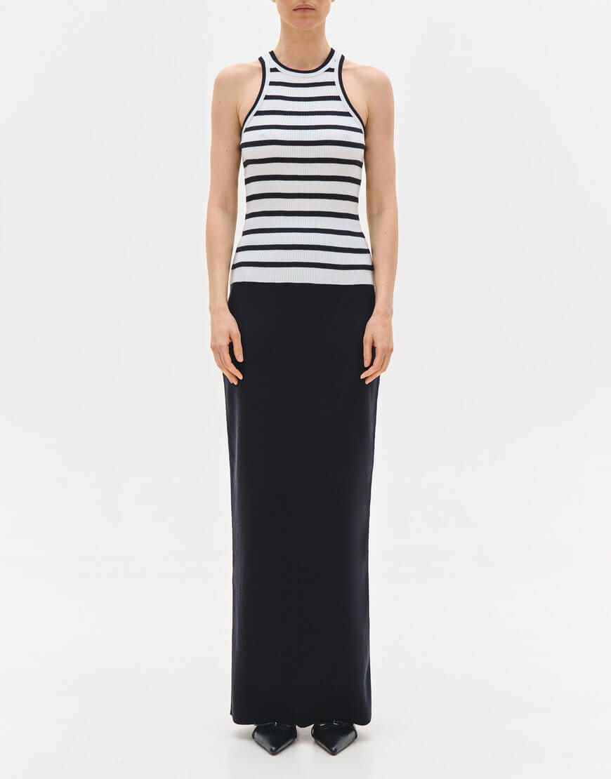 Повсякденна та універсальна майка з щільного трикотажу в рубчик. В основі пряжі – ніжна та приємна до тіла нитка з віскози стрейч та бавовни.