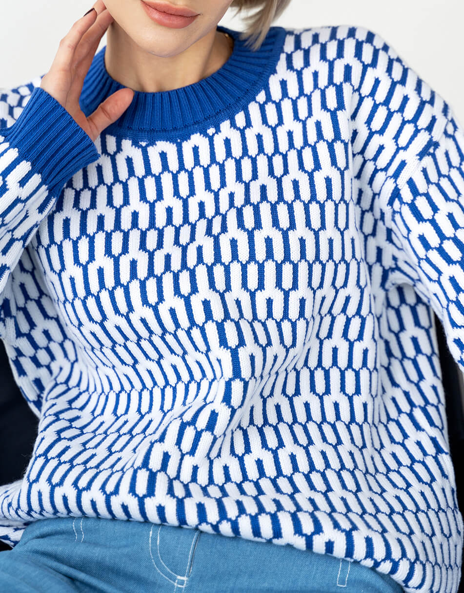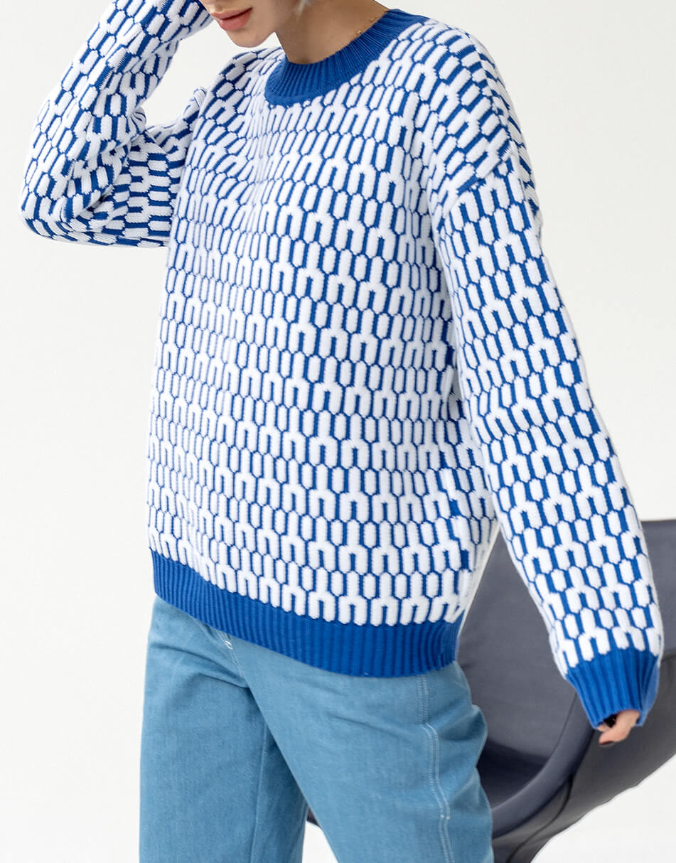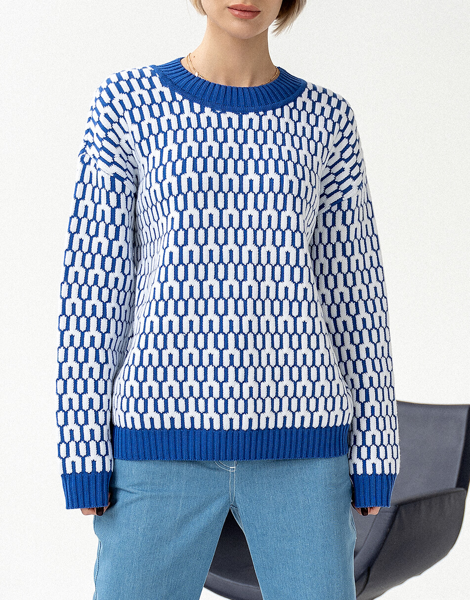 Бавовняний светр вільного крою з круглим коміром, малюнок з 3D ефектом.