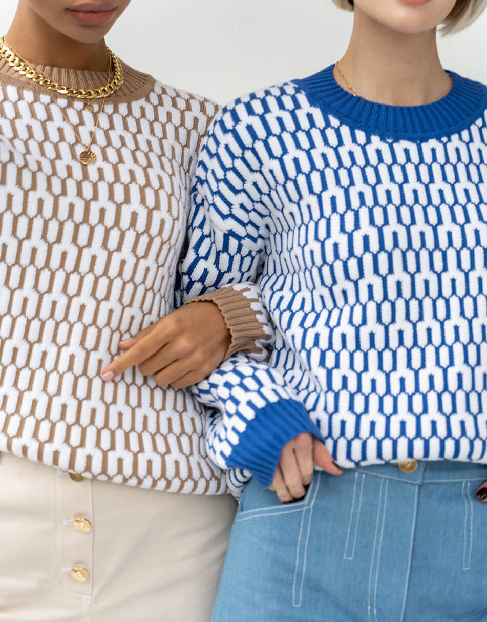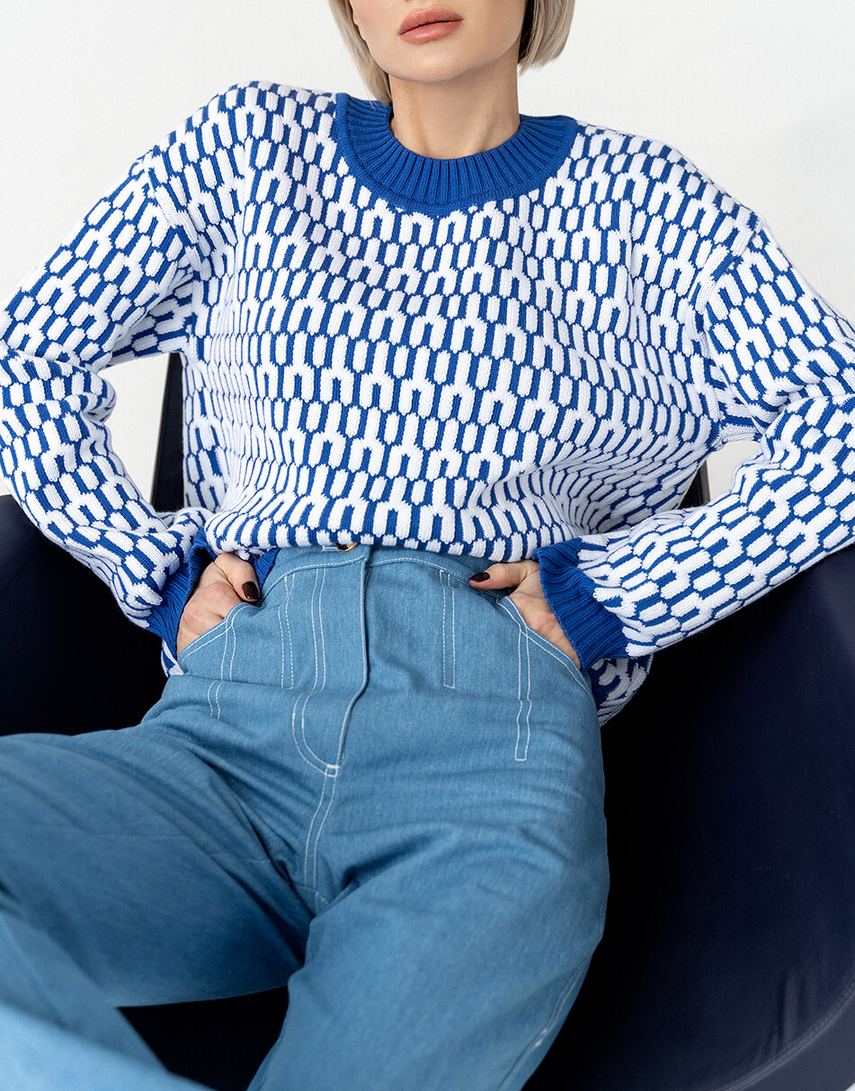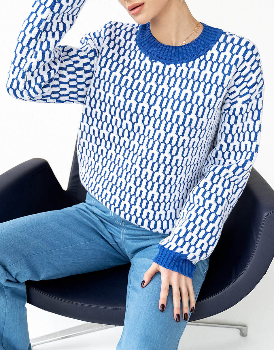 Бавовняний светр вільного крою з круглим коміром, малюнок з 3D ефектом.