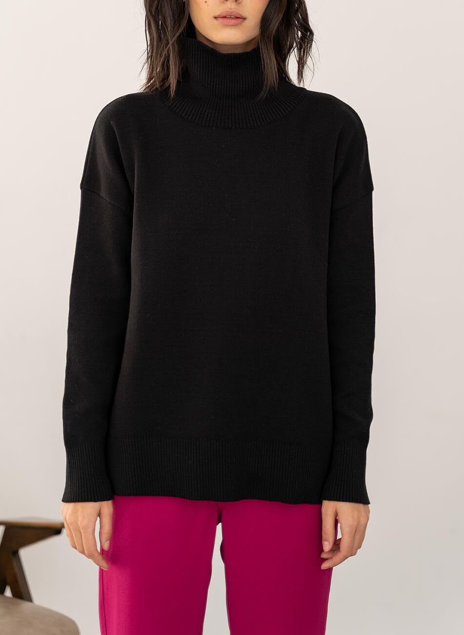 Доставка в течение 2-5 рабочих днейСветр виконаний з м’якої та приємної до тіла пряжі. Светр вільного крою з високою горловиною. Манжети і нижній край вив’язані широкою гумкою, завдяки якій краї светра не розтягуються.