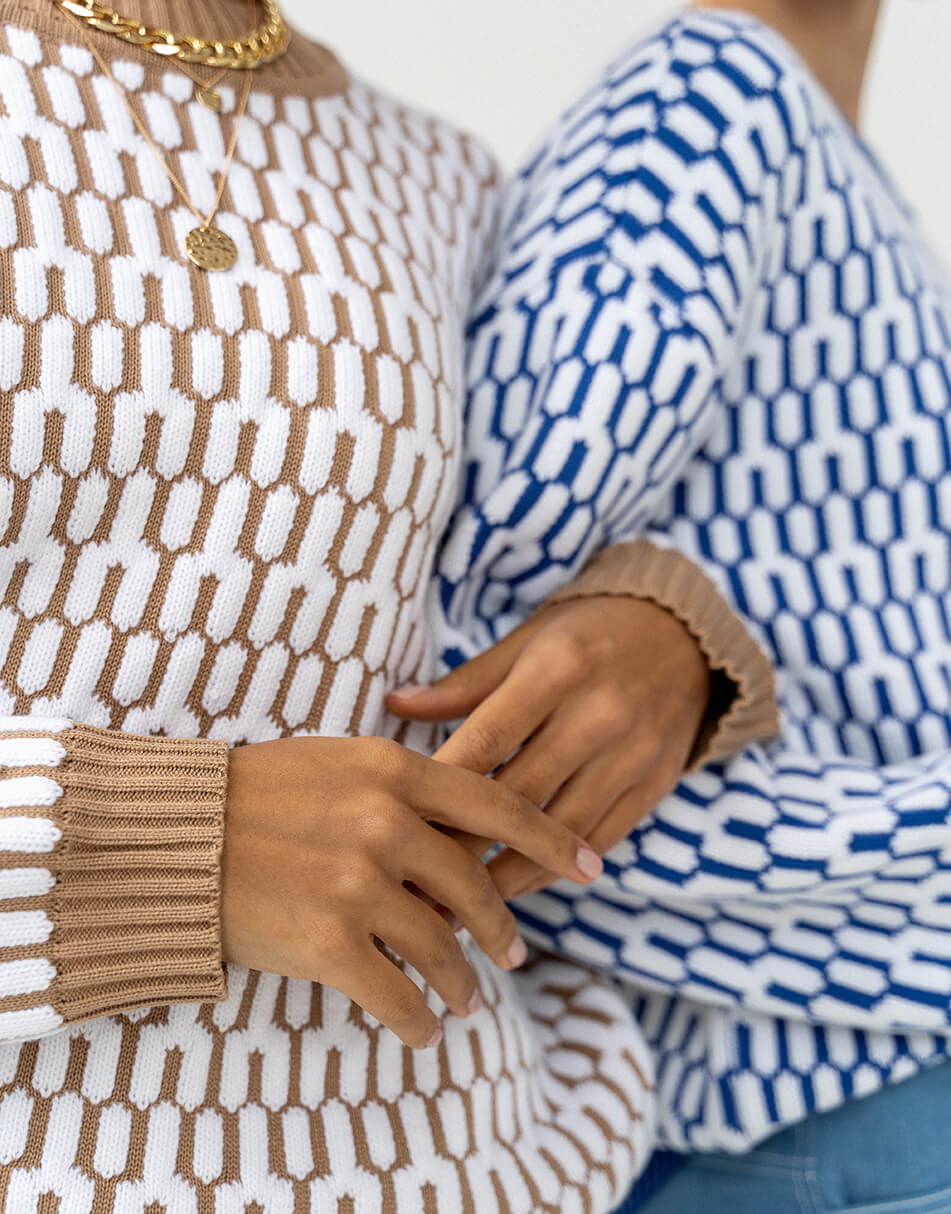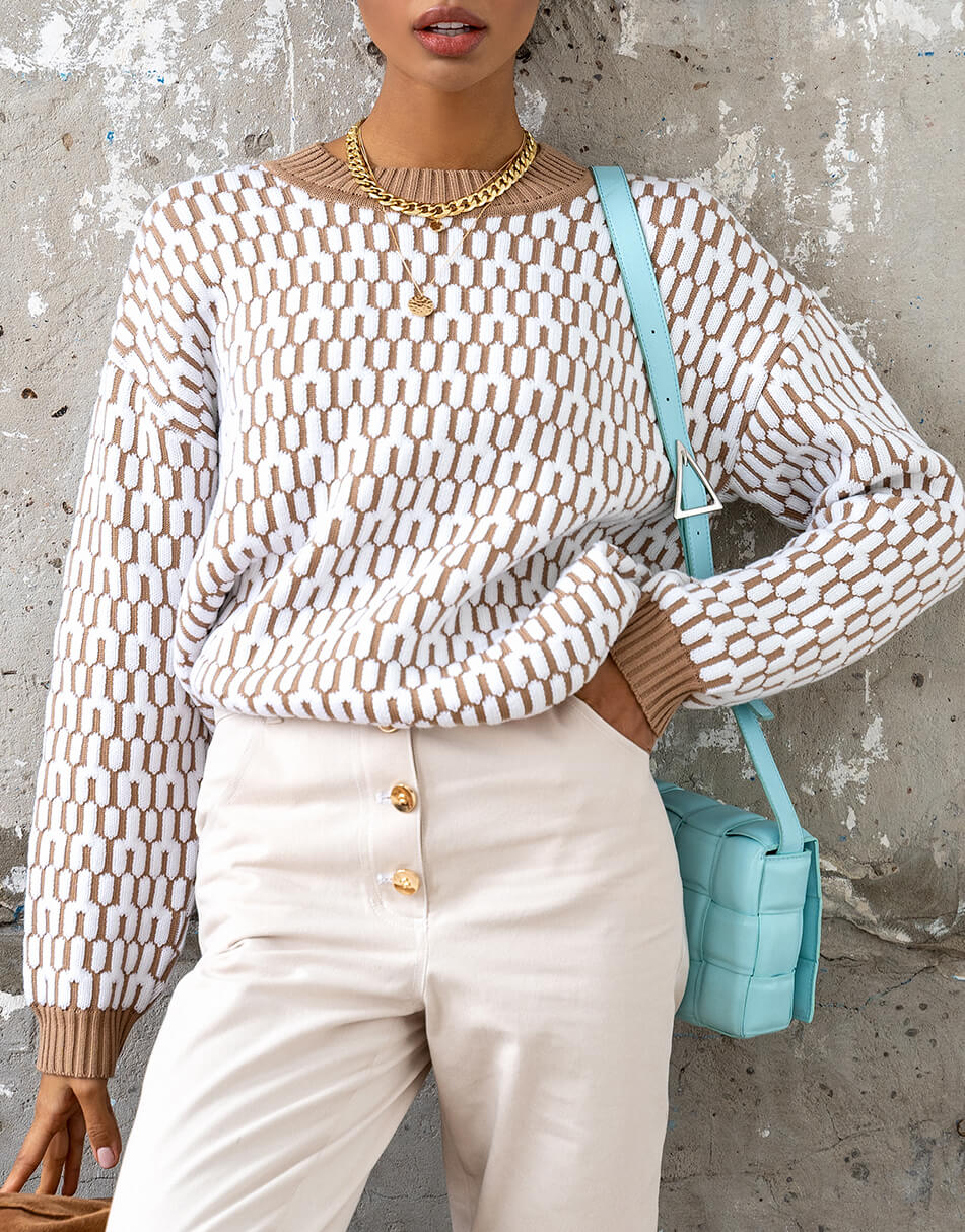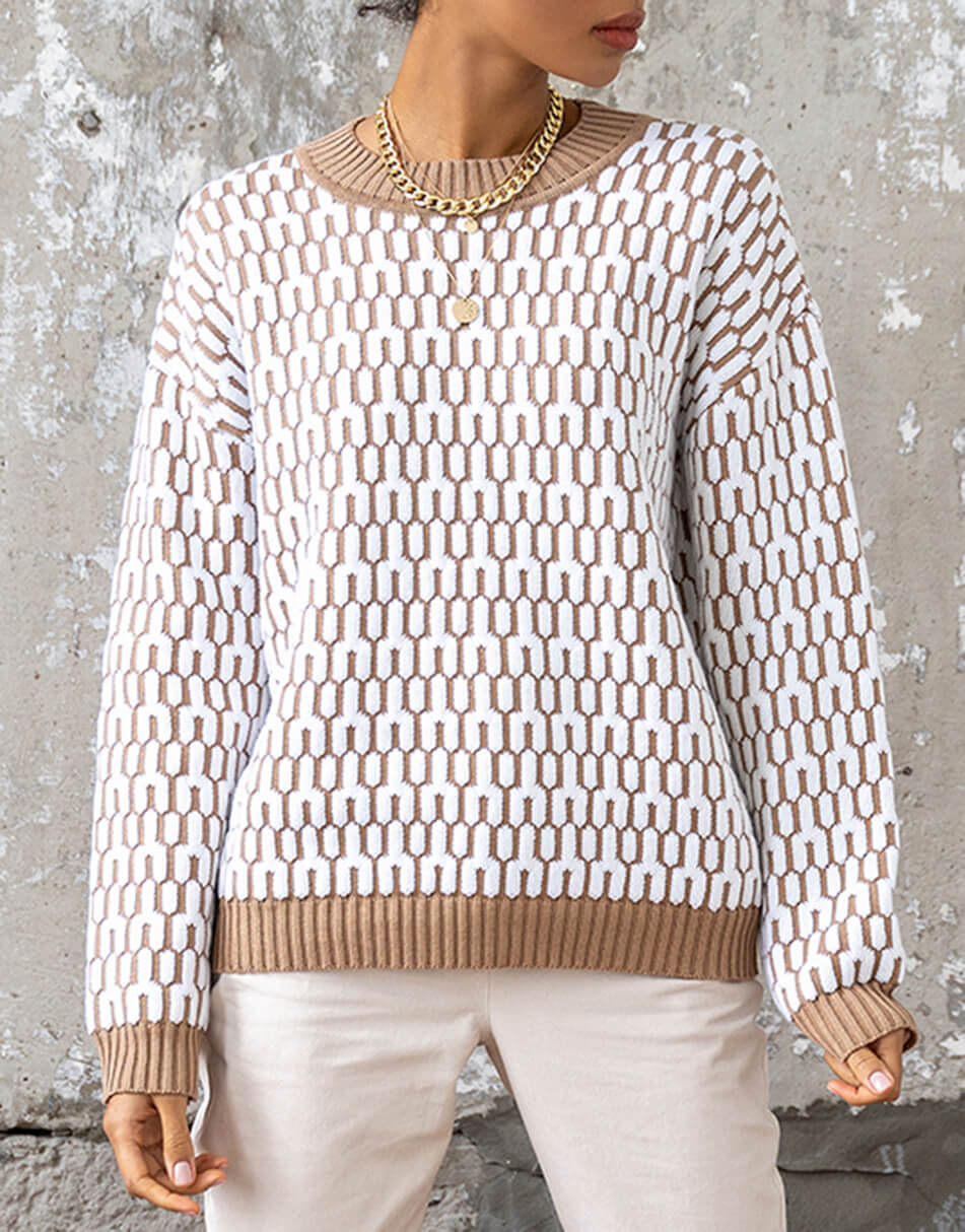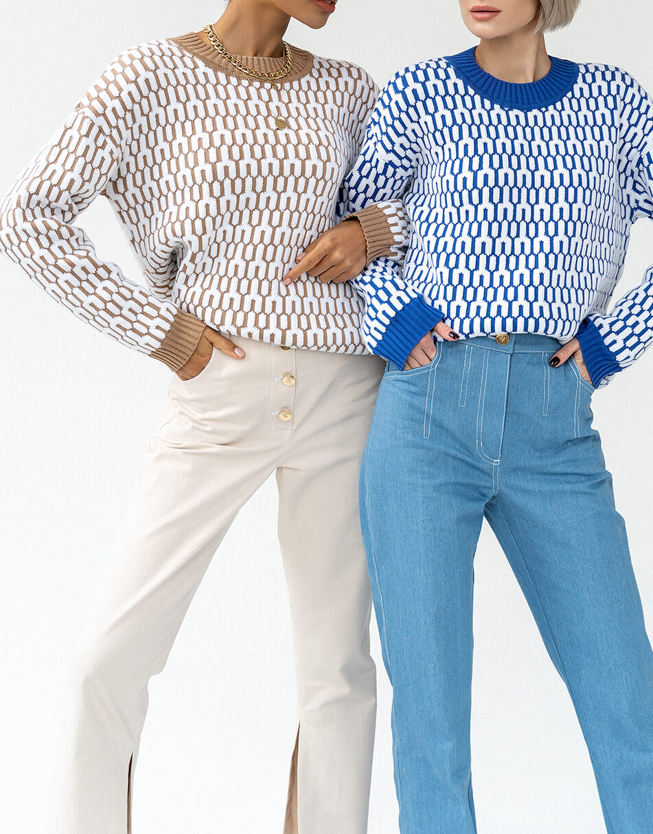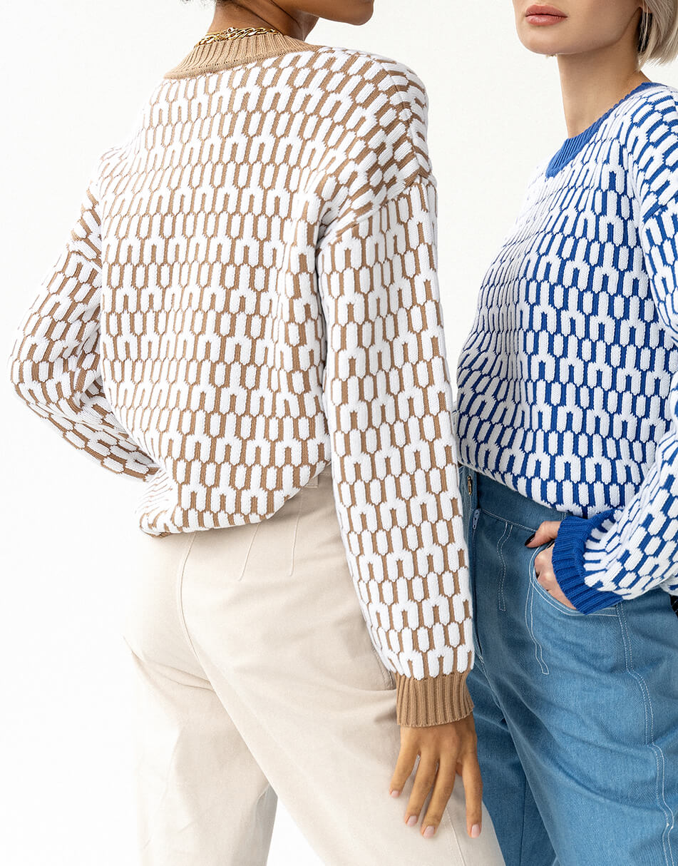 Бавовняний светр вільного крою з круглим коміром, малюнок з 3D ефектом.