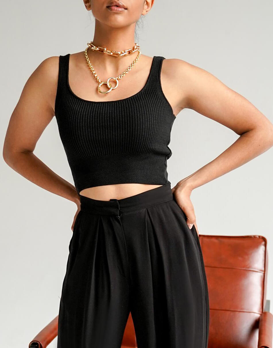 Бавовняний кроп-топ на бретелях і з глибоким вирізом дають змогу використовувати цю модель як у casual, так і у вечірніх образах. Наявність у складі штучного волокна робить матеріал більш довговічним і еластичним.
