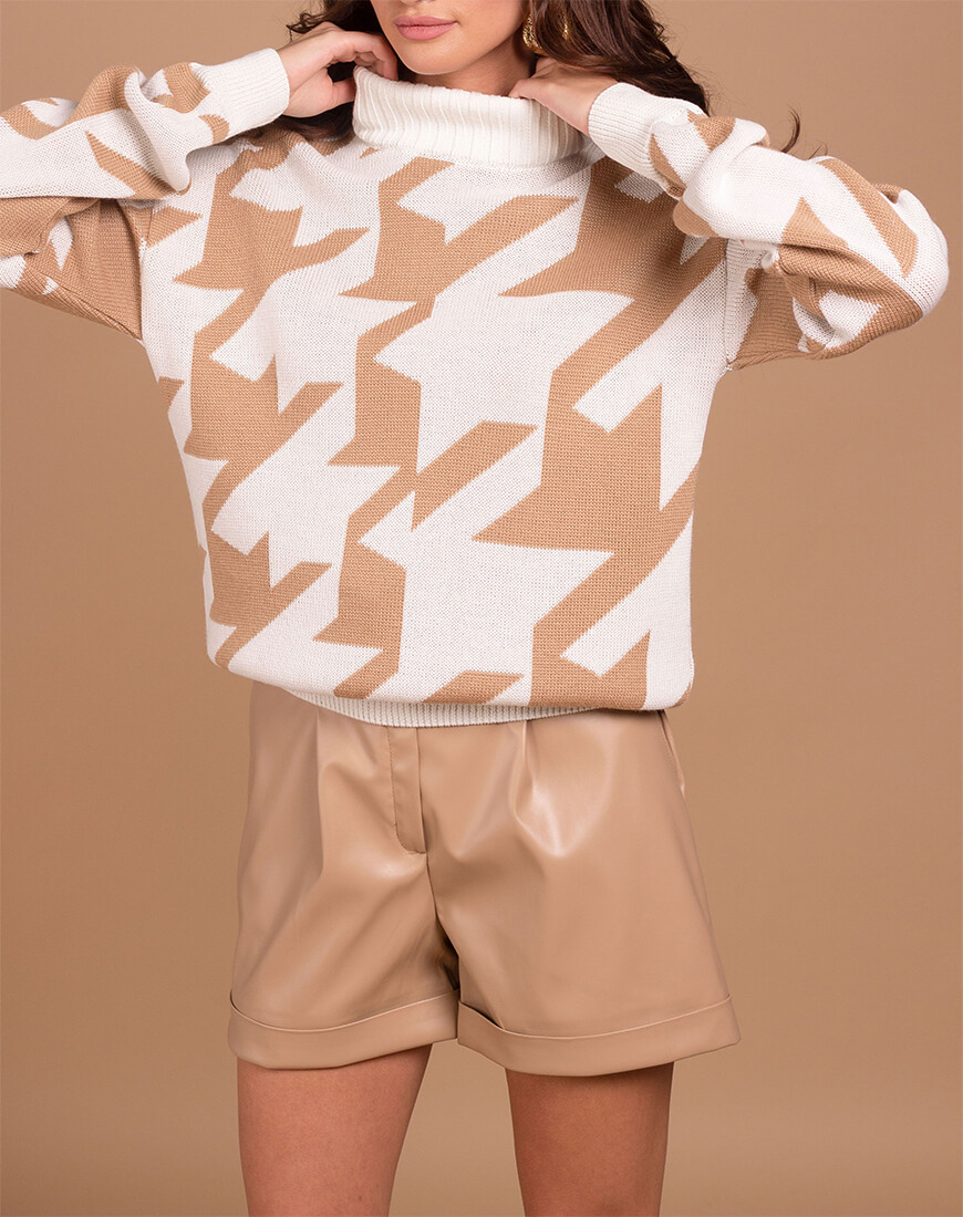 Светр вільного силуету, зі спущеною лінією плеча. Вишуканий і елегантний принт “гусяча лапка”.