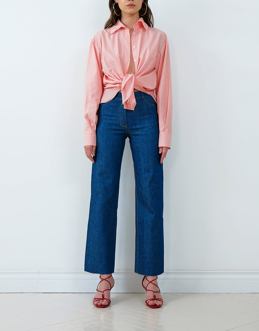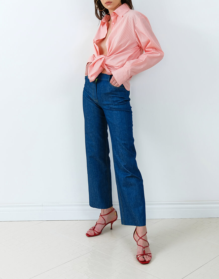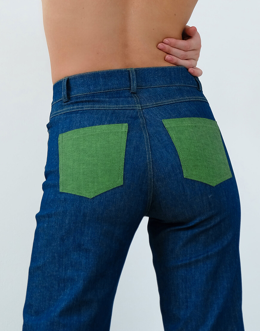 Джинси з високою посадкою, прямого крою та яскравими кишенями