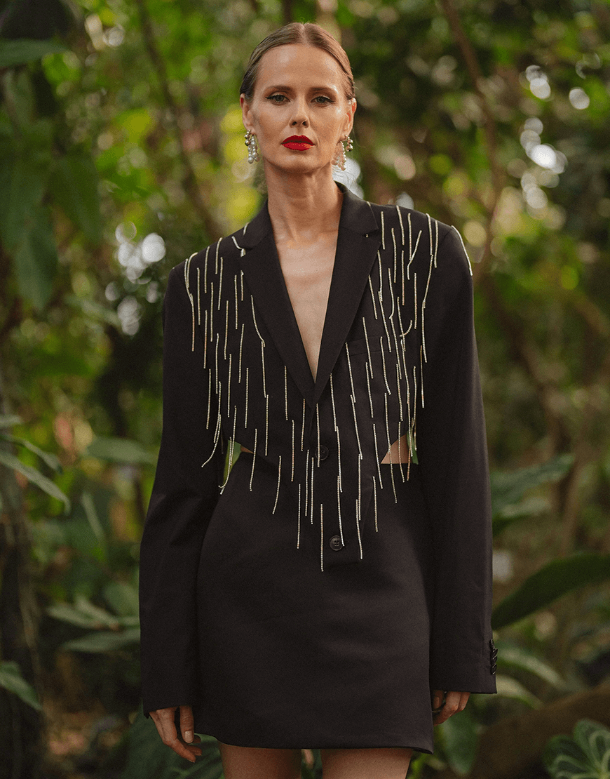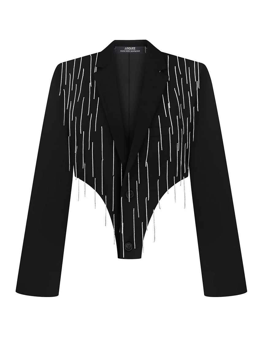 Піджак вінтажного походження. Апсайклінг, реставрований до нового і декорований стразовими ланцюгами