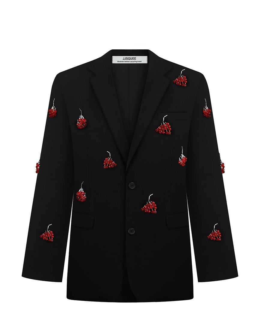 Доставка протягом 2-10 робочих днівПіджак вінтажного походження. Апсайклінг, реставрований до нового і декорований рухливими елементами з намистин.