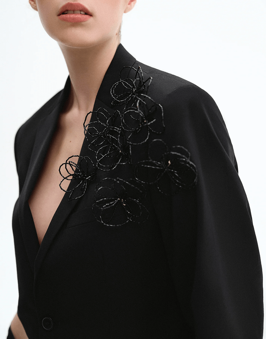 Піджак вінтажного походження. Апсайклінг, реставрований до нового і декорований квітами з бісеру.