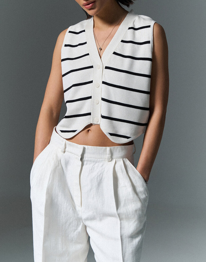 Жилет в смужку, молочний