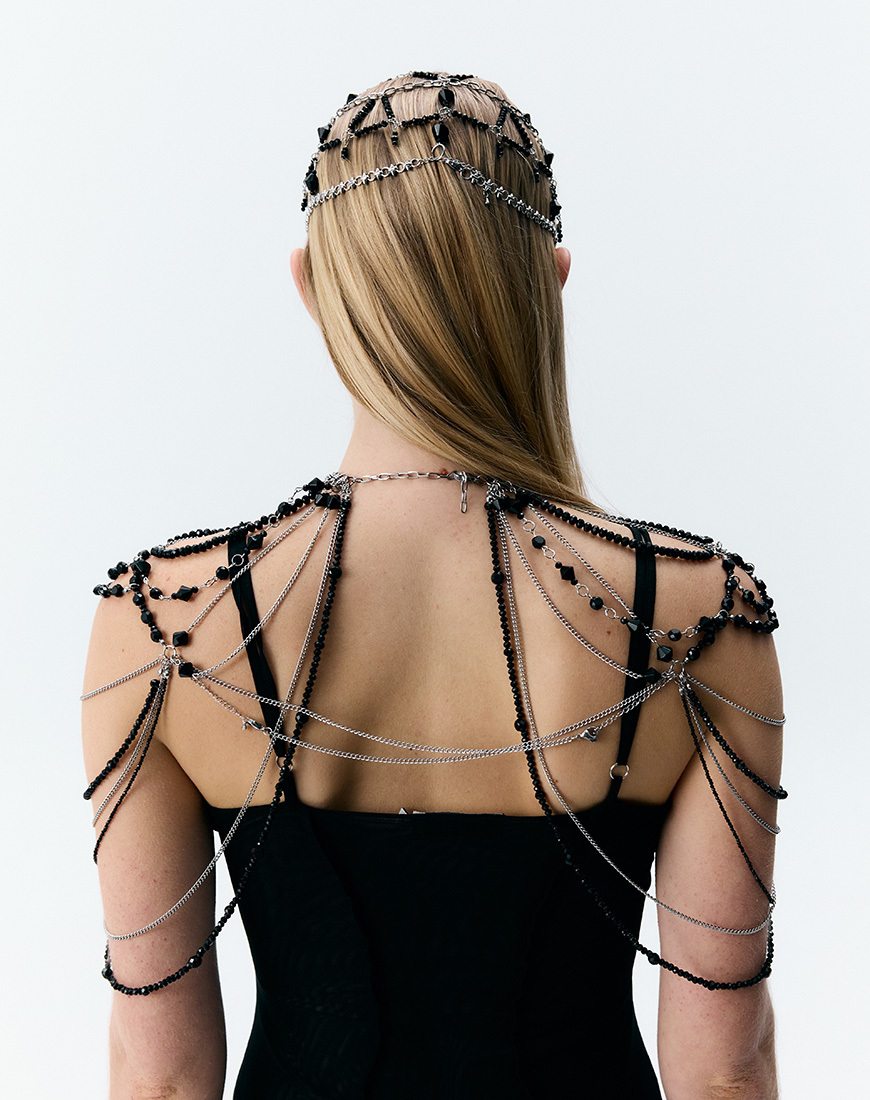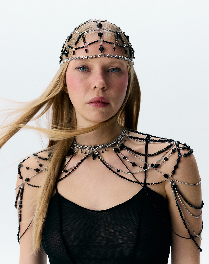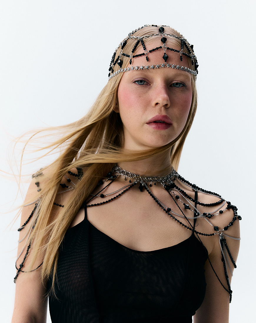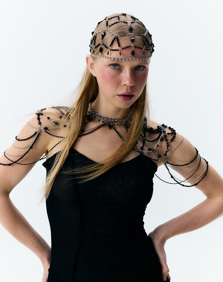 Доставка впродовж 2-5 робочих днівМістична прикраса на голову з ланцюжків і декоративних елементів з нержавіючої сталі та імітації кришталю. Делікатно обрамлює силует, створює акцент на погляді та додає містичності й сили. Розмір регулюється за допомогою подовжувача. Ідеально поєднується з вечірніми та експериментальними образами, включно з гранжем і порношиком, підкреслюючи індивідуальність і сміливість самовираження