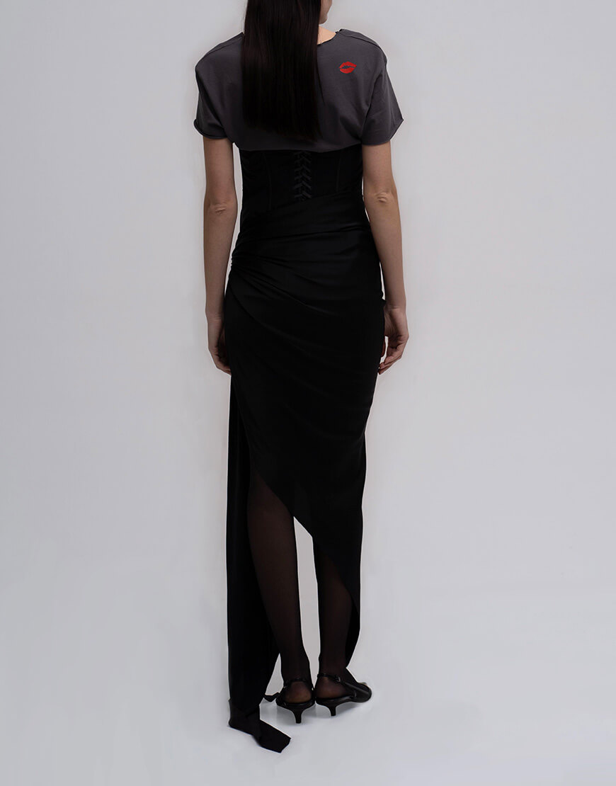 Доставка впродовж 2-5 робочих днівСпідниця косого крою, з довгими зав’язиками на талії